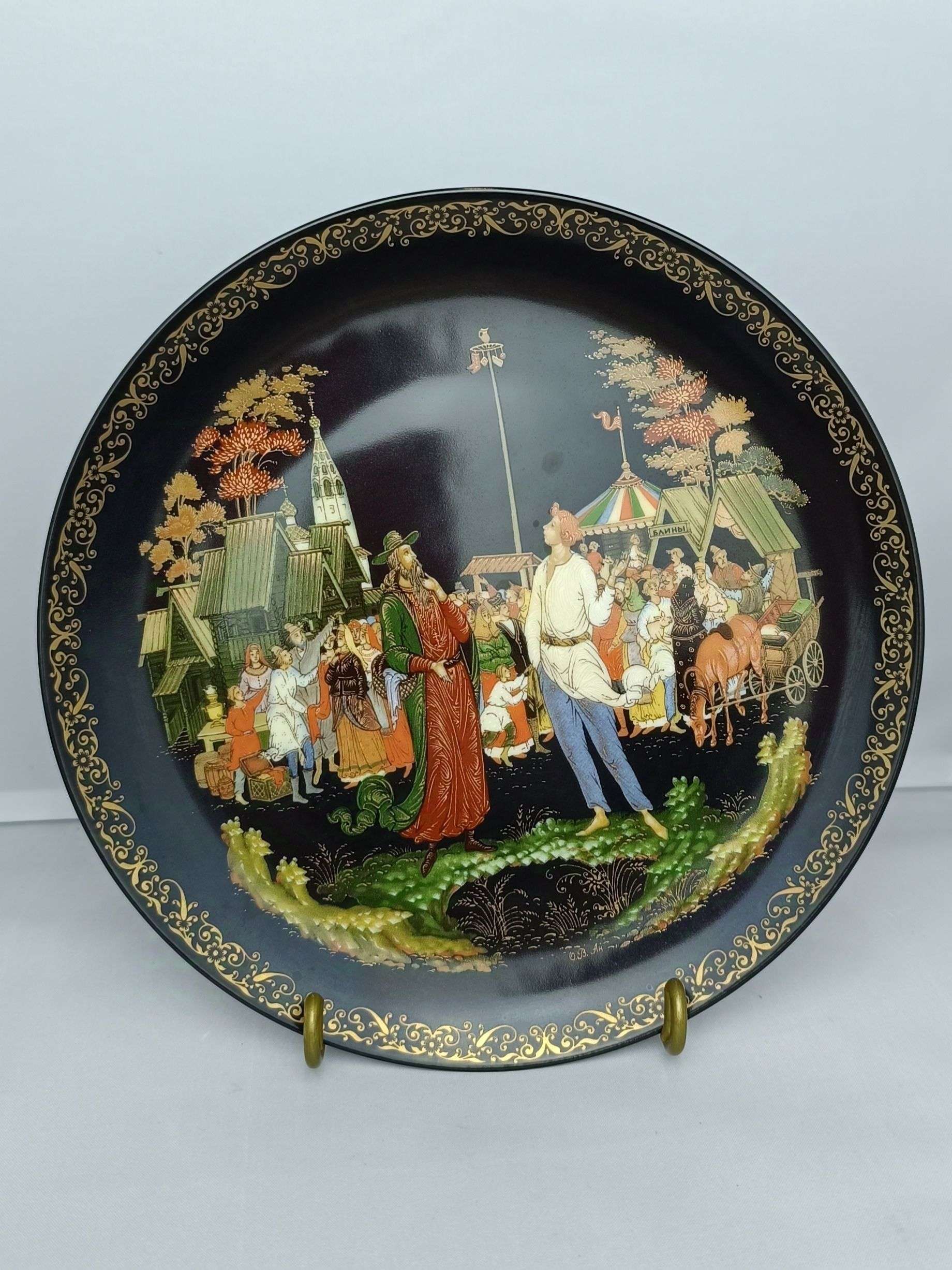 Декоративная коллекционная фарфоровая тарелка «Сказка о попе и работнике его Балде». А.С. Пушкин. Палех, Виноградовский Фарфоровый Завод