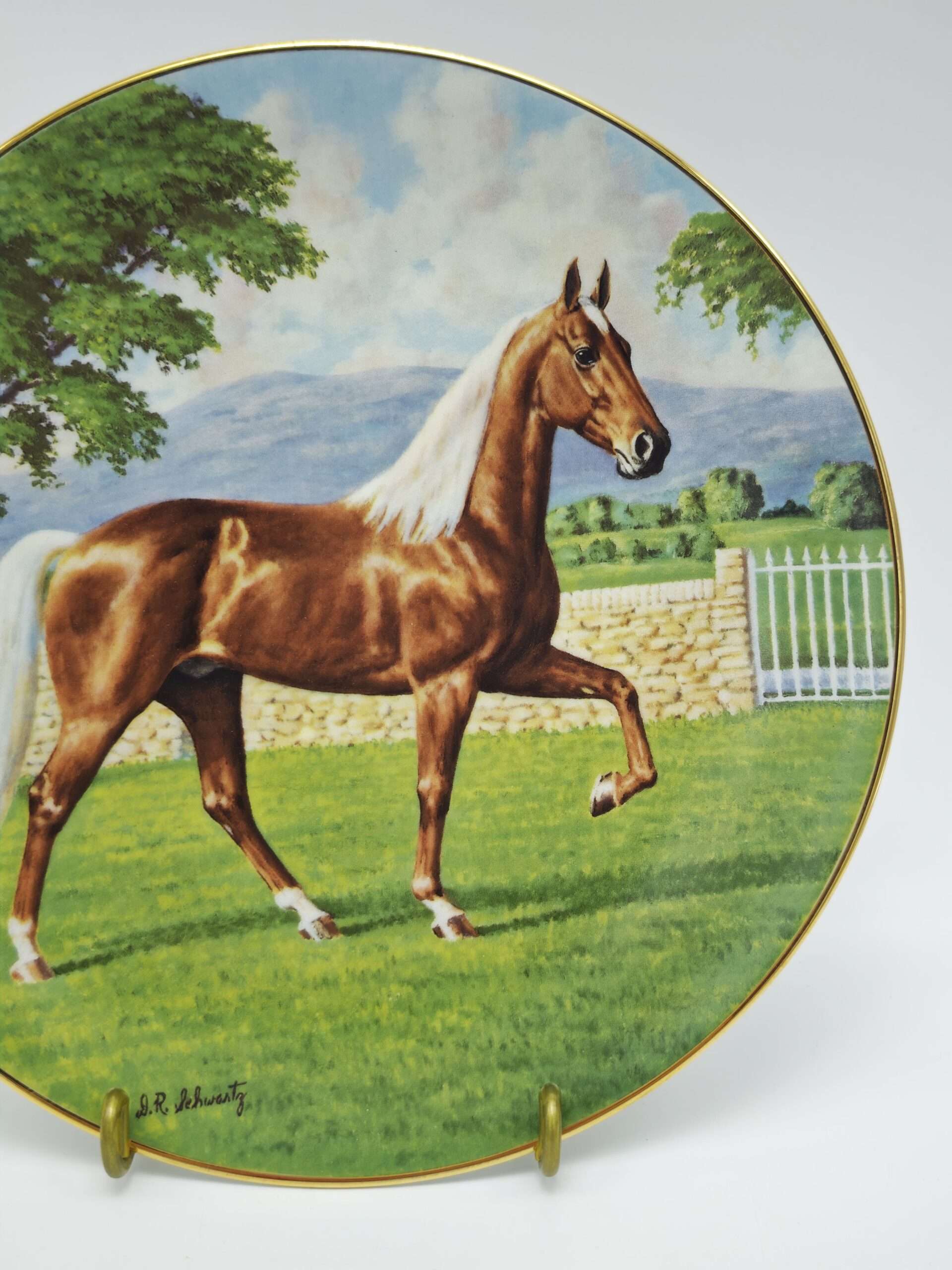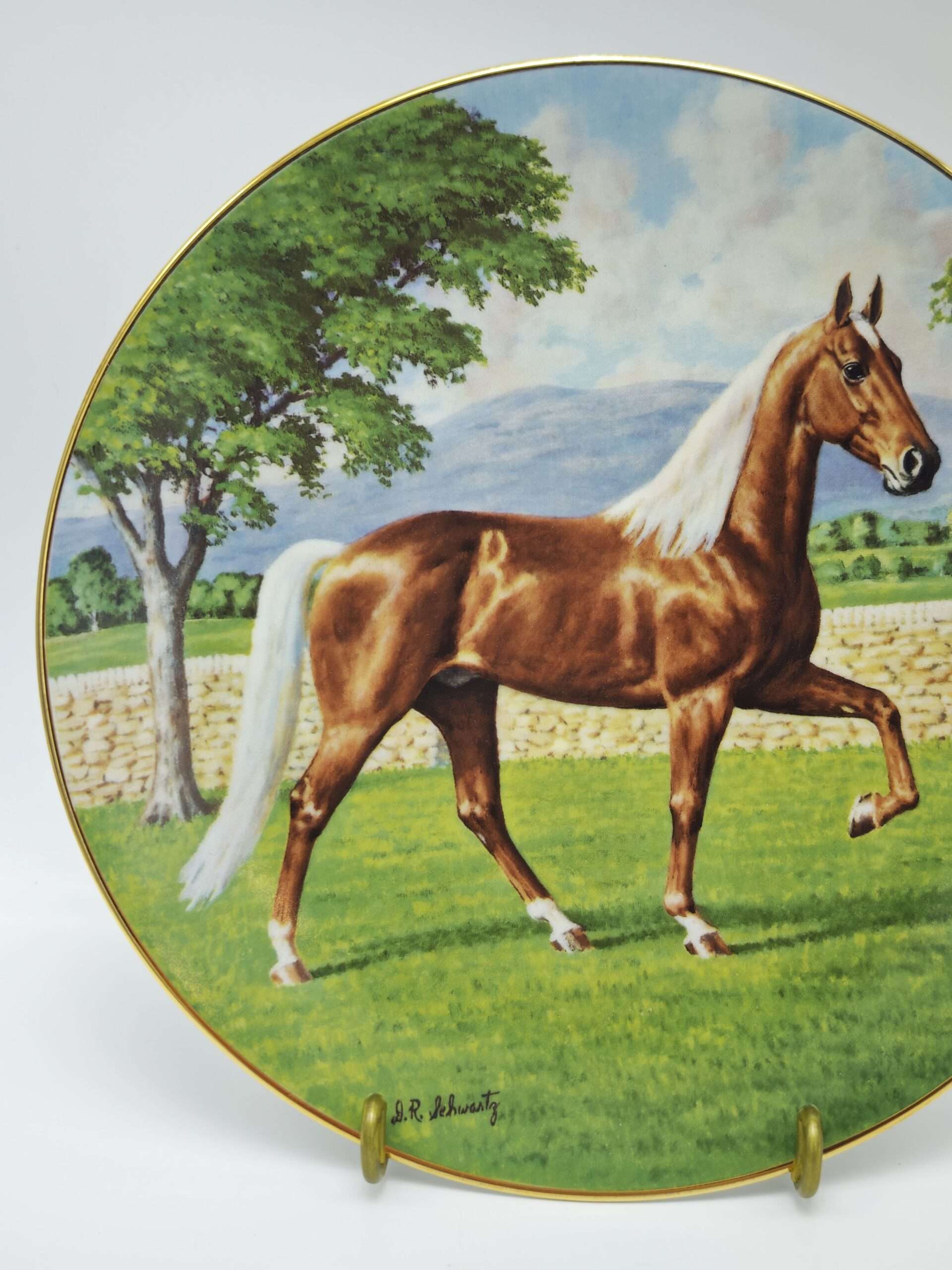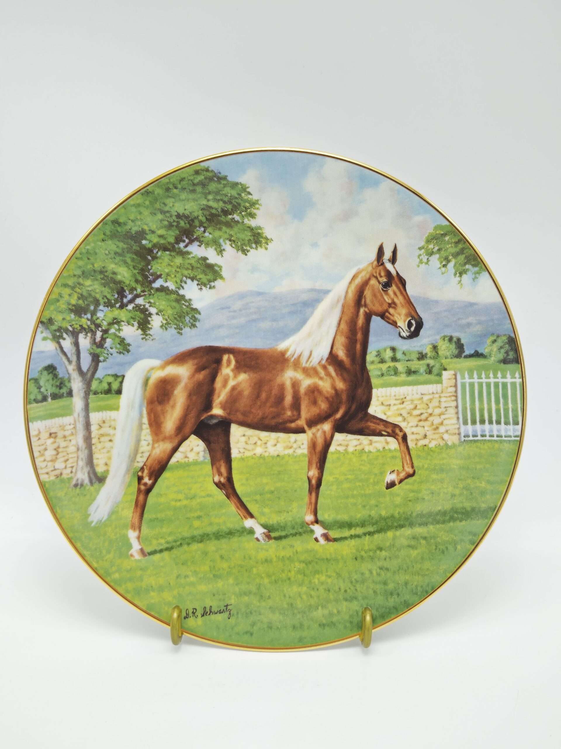 Декоративная коллекционная тарелка «Чистокровные лошади Америки». Фарфор, деколь, золочение. США, W.S. George 1989 год