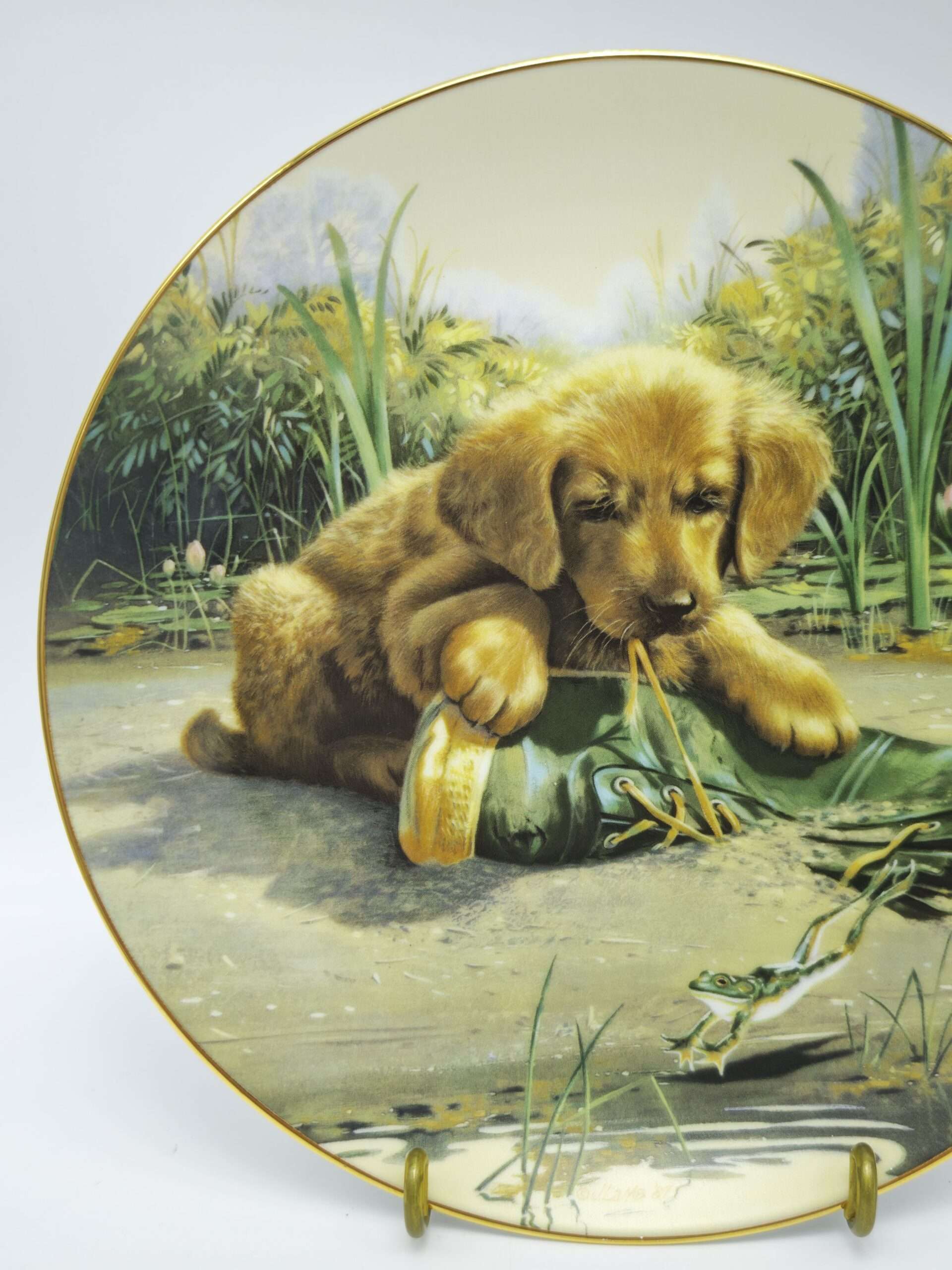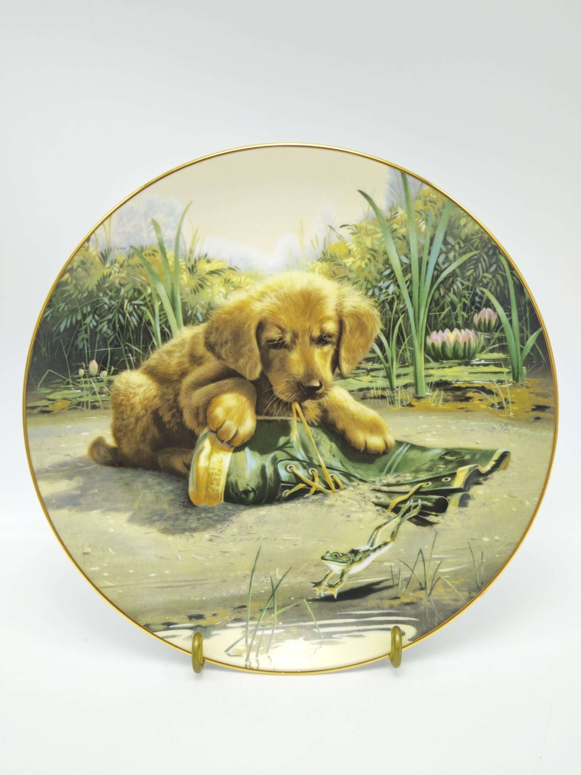 Декоративная коллекционная тарелка “Щенок играет”. Фарфор, деколь, золочение. США 1987 год, River Shore Ltd., Джим Лэмб.