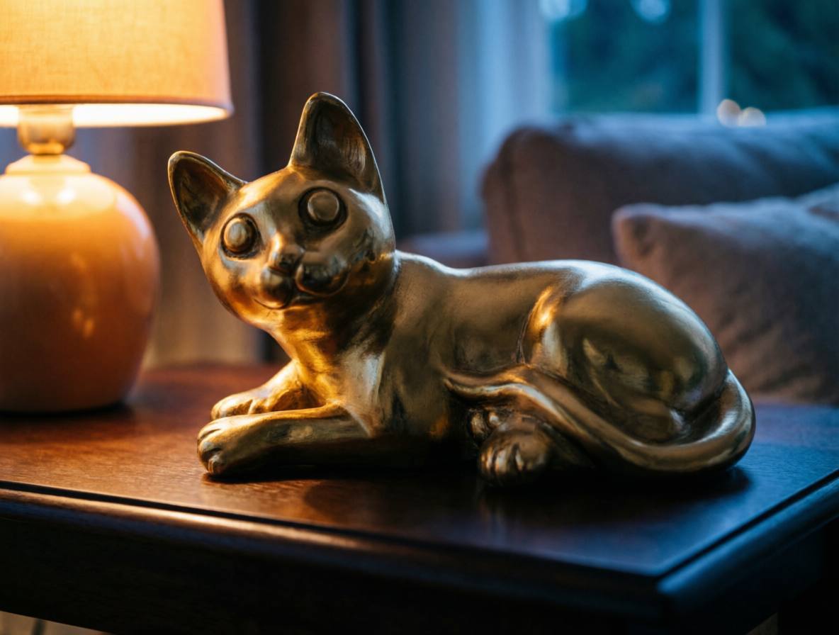 Уникальный акцент для вашего интерьера. Статуэтка кошки из латуни с благородной патиной — это не просто декор, а произведение искусства, которое добавит уюта и шарма в любой интерьер. Каждая деталь — от изгиба хвоста до выразительных глаз — создана с вниманием к мелочам. Материал латуни гарантирует долговечность и благородный блеск, а патина придает винтажный шарм, напоминая о старинных артефактах.