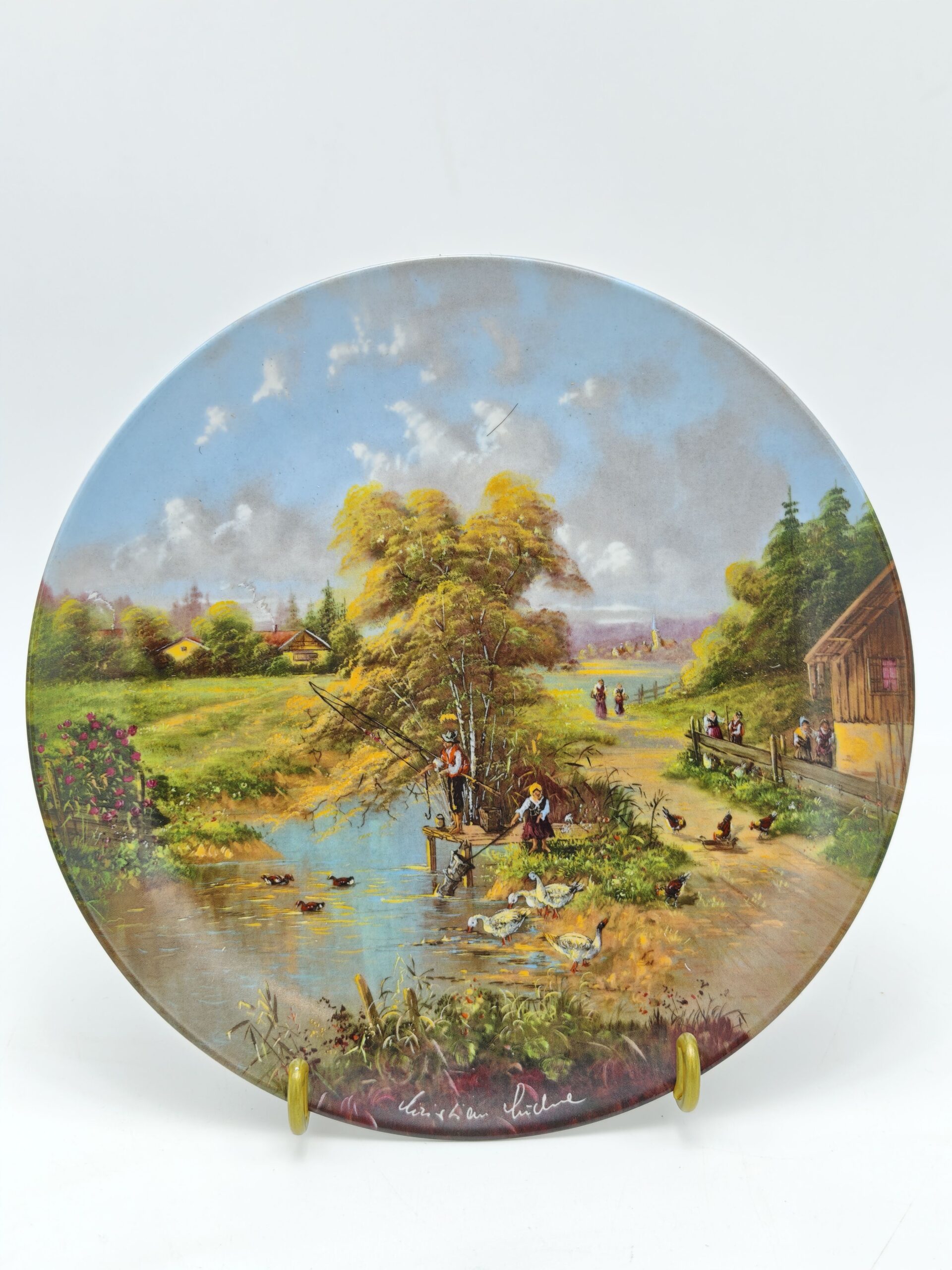 Декоративная настенная тарелка «Идиллия сельской жизни. Удовольствие От Рыбалки».