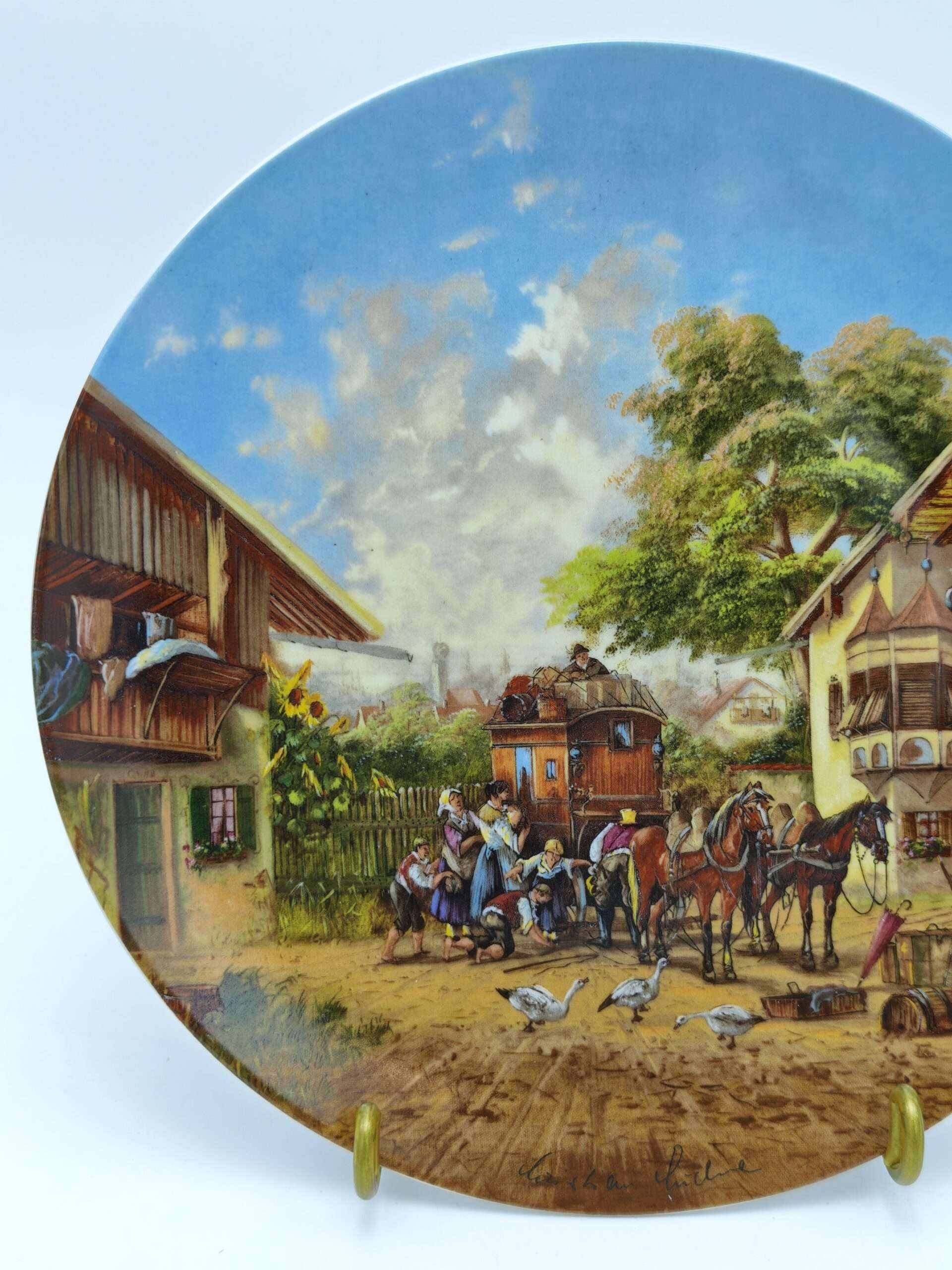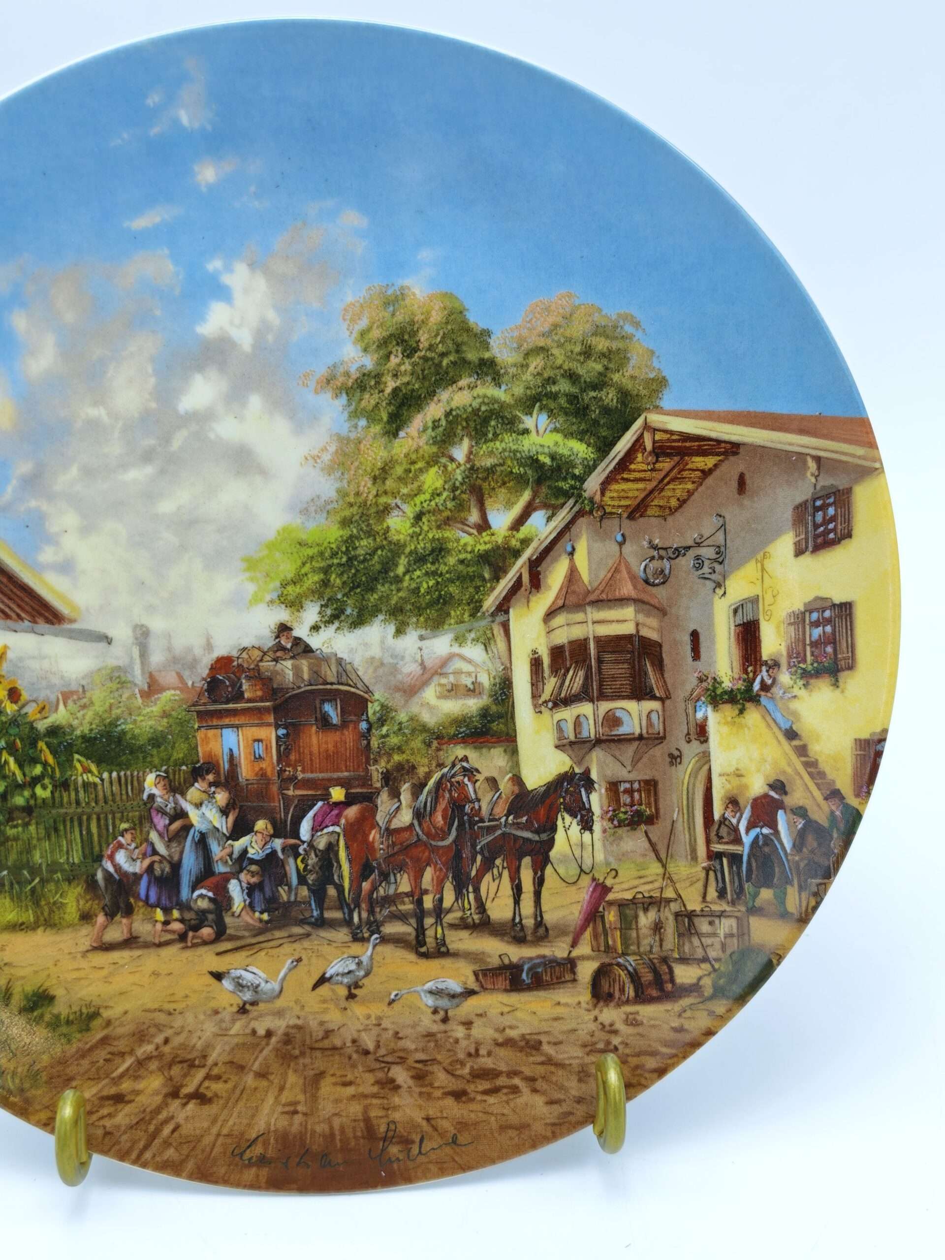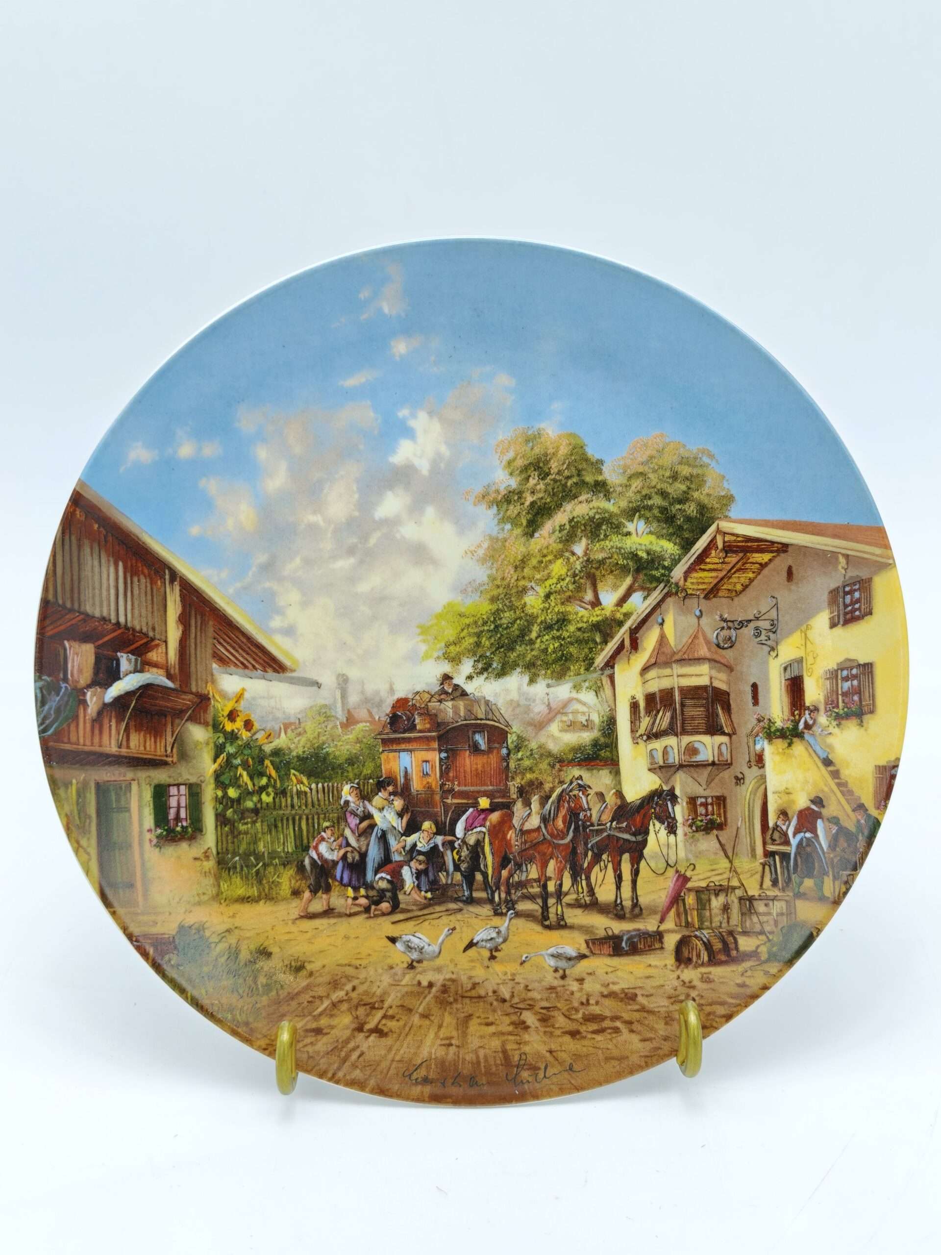 Декоративная настенная тарелка “Идиллия сельской жизни. Звонит почтовая карета”.