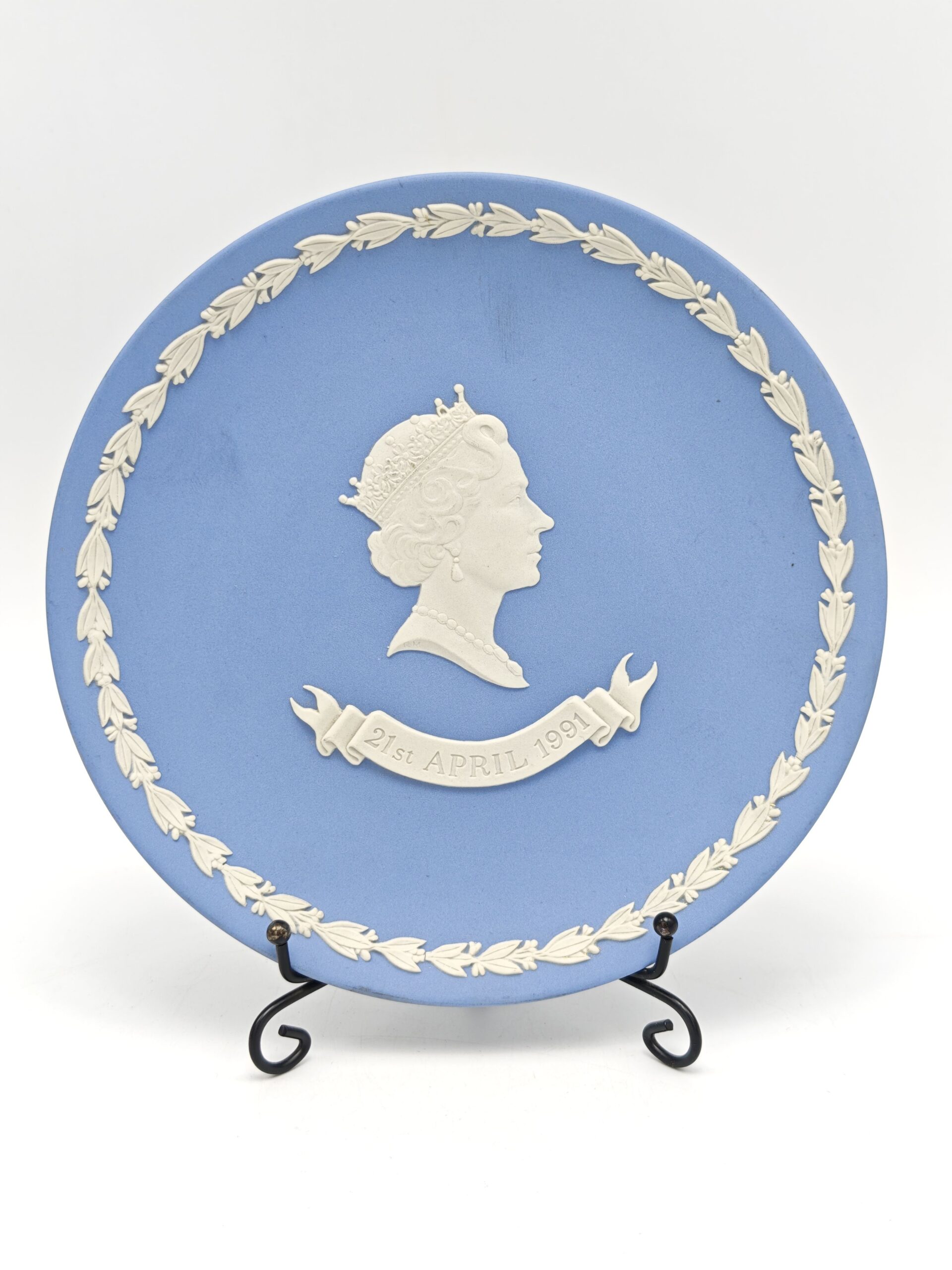 Декоративная тарелка «Елизавета II». Голубой бисквит, рельеф. Wedgwood, Великобритания 1991 год Диаметр 17 см