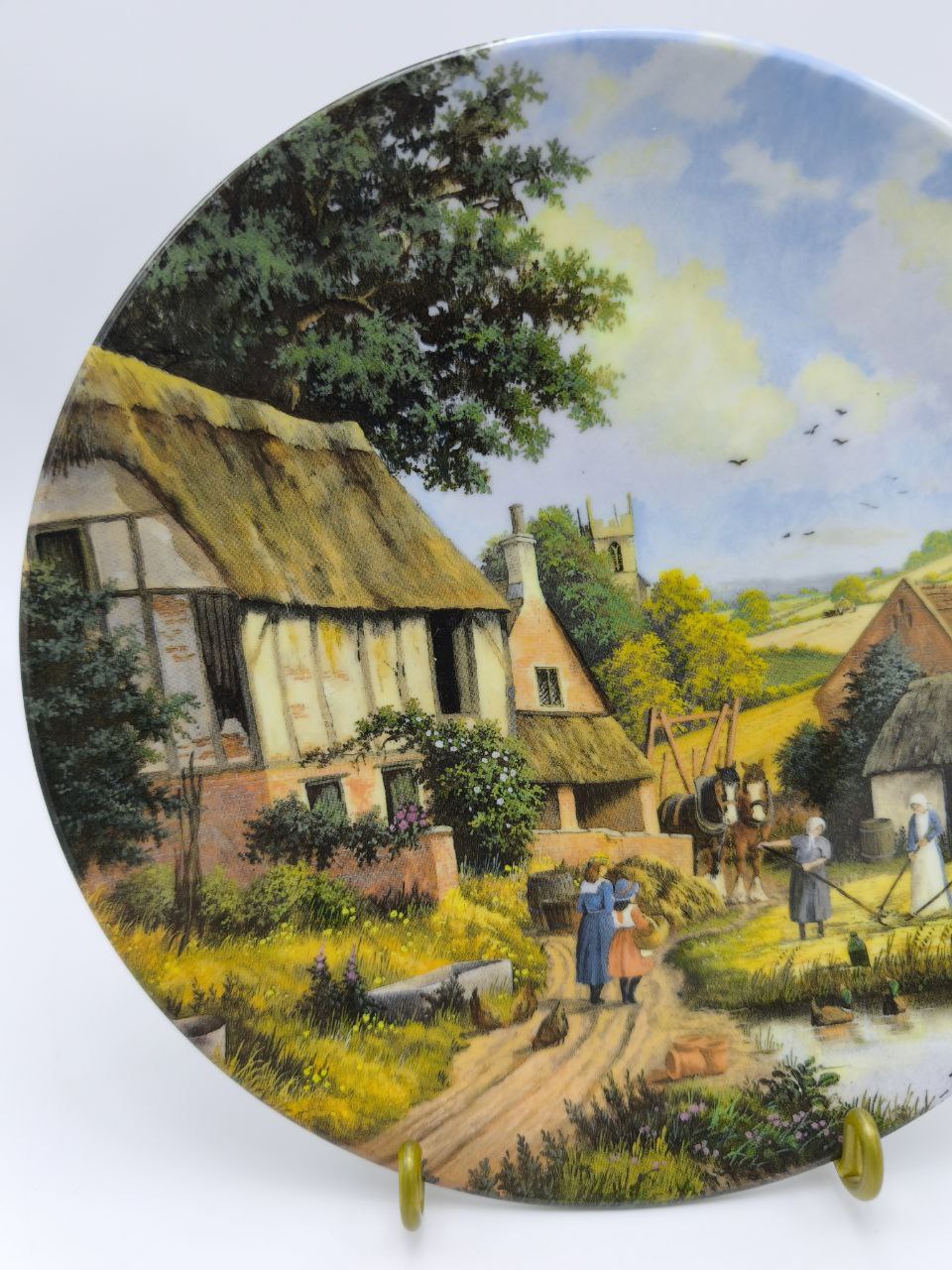 Декоративная фарфоровая тарелка – изысканный предмет интерьера, который подарит вашему дому атмосферу уюта и тепла. На тарелке изображена идиллическая деревенская сцена: старинные домики с соломенной крышей, сельские жители за работой и живописный пейзаж с зелёными холмами под голубым небом. Благодаря технике деколь, рисунок выполнен с высокой детализацией, оптически создавая эффект ожившей картины. Материал этой тарелки – фарфор высшего качества, который не только придаёт изделию элегантность, но и обеспечивает его долговечность. Такая тарелка сохранит свои яркие краски и идеальную поверхность даже спустя годы. Техника деколь даёт возможность нанесения рисунка с исключительной точностью – каждый элемент композиции выглядит утончённо и фокусирует внимание на деталях. Эта тарелка станет идеальным украшением вашей кухни, гостиной или столовой, гармонично вписываясь в интерьер в стиле прованс, ретро или классика. Она также прекрасно подойдёт для оформления уютного кафе или загородного дома, создавая комфортную, добрую атмосферу. Отдельно стоит её эстетическая ценность – это не просто декоративный предмет, но настоящее художественное произведение. Кроме того, тарелка может стать прекрасным подарком для близких, особенно для ценителей антикварного дизайна и уникальных декоративных вещей. Будь то день рождения, новоселье или годовщина, такая изысканная вещь вызовет восторг и станет символом внимания и заботы. Добавьте в свой дом нотку изящества и непринужденной элегантности с этой волшебной фарфоровой тарелкой, которая несет в себе деревенский уют и гармонию природы!