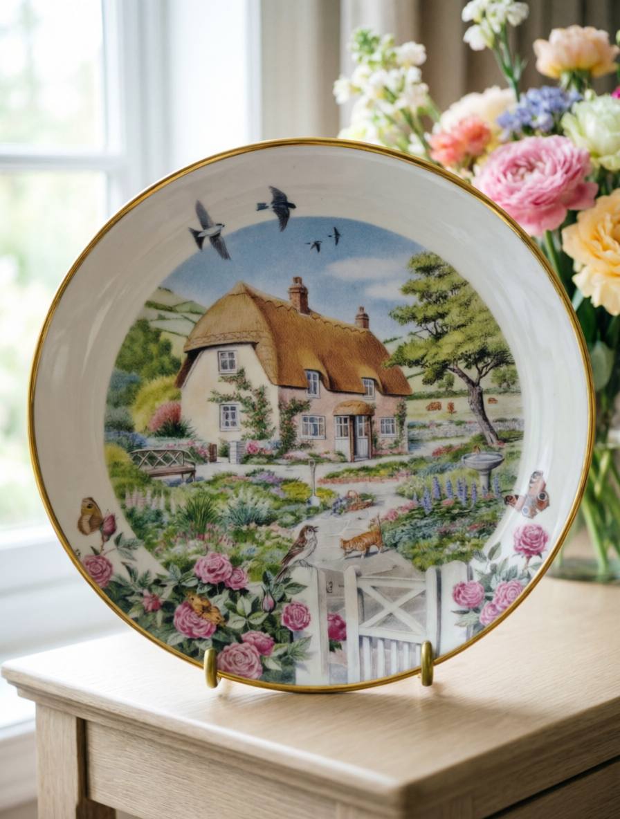 Коллекционная декоративная тарелка The Franklin Mint “Rose Cottage” — изысканный элемент интерьера из лимитированной серии.