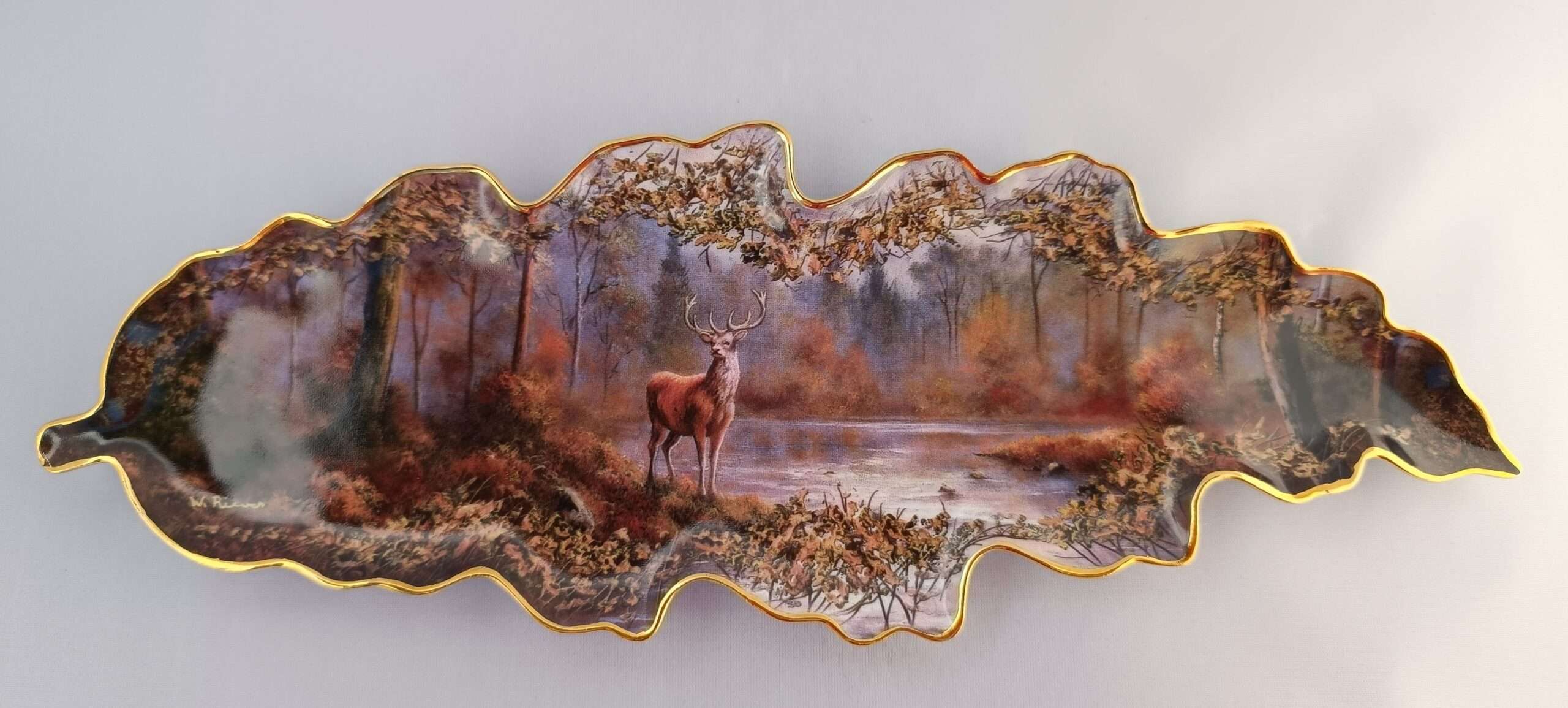 Декоративная коллекционная тарелка в форме дубового листа из серии «Элегантность природы». Охотничьи Сюжеты. Сцены Природы.
