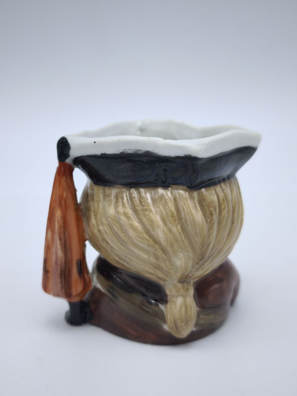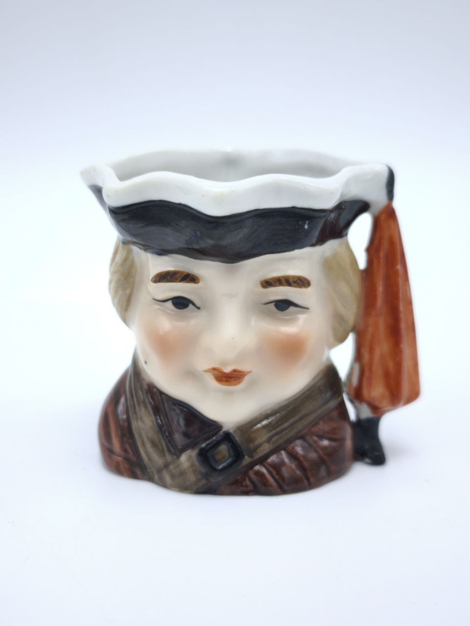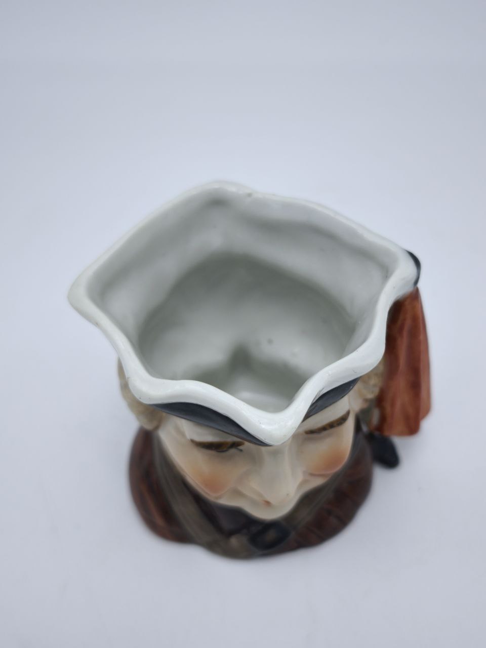 Эта декоративная фарфоровая кружка в виде головы мужчины представляет собой прекрасный пример винтажного искусства и изящного фарфорового ремесла. Детали тщательно проработаны, создавая реалистичный и эффектный образ, который смотрится уместно как в классическом интерьере, так и в современной коллекции любителей антиквариата. Черты лица мужчины выполнены с большой точностью: глубокий взгляд, чуть приподнятые брови и аккуратно вылепленные усики создают впечатление, что перед вами не просто кружка, а своего рода миниатюрный портретный бюст. Раскраска добавляет дополнительное очарование — фарфор покрыт матовой или глянцевой глазурью, что подчеркивает оттенки кожи и текстуры волос. Эта кружка не только станет ярким украшением полки или витрины, но и внесет ноту утончённости в ваш интерьер. Несмотря на винтажный стиль, она сохраняет свою функциональность: её можно использовать как декоративный элемент, вазочку для сухоцветов или даже для задумчивого чаепития. Тем не менее, её возраст и ценность как винтажного изделия делают использование кружки в повседневной жизни нежелательным — это больше объект восхищения, чем утилитарный предмет. Такой предмет будет прекрасным подарком для коллекционеров, людей, восторгающихся вещами с историей, или тех, кому по душе изящное сочетание искусства, традиций и мастерства.