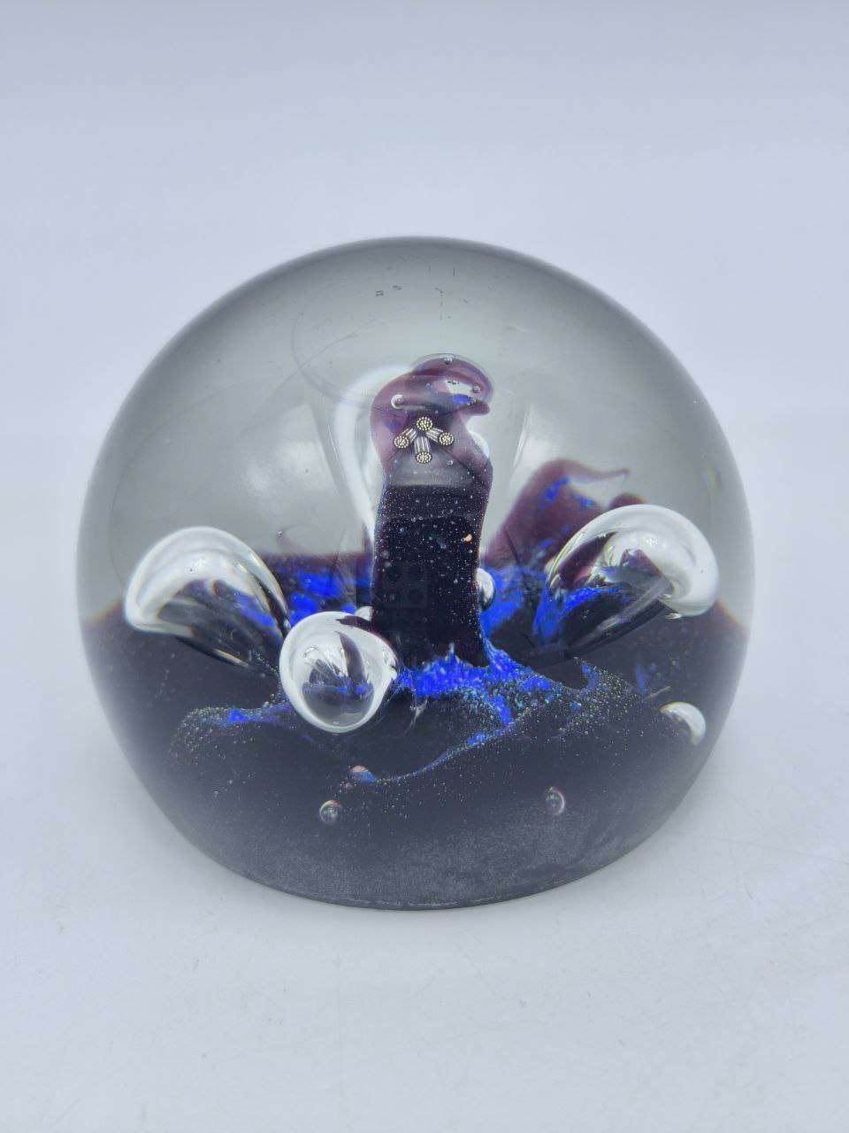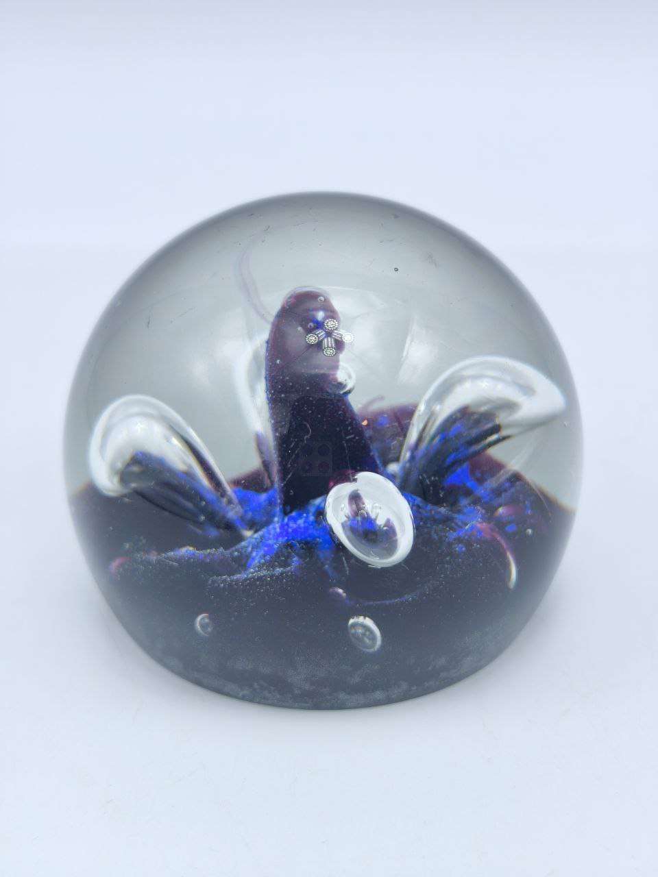 Погрузитесь в мир утонченной красоты и изысканности с нашим эксклюзивным стеклянным пресс-папье, размер 8х6см. Этот кристально чистый шар, служащий как практичным аксессуаром, так и уникальным декоративным элементом, способен украсить любое пространство — будь то рабочий кабинет, гостинная или уютный уголок вашего дома.Особенность нашего изделия — это его внутренняя структура, подобная чудесам вселенной: внутри шара, словно замороженная в движении, завораживает магия фиолетово-синего водоворота со сверкающими пузырьками воздуха, которые создают ощущение глубины и таинственности. Каждый угол обзора открывает перед вами новые детали, расставляя акценты на игре света и разноцветных переливах.Будучи устойчивым и массивным, этот презентабельный аксессуар превосходно справляется со своей основной функцией — удержанием бумажных листов. Но в то же время, он может стать великолепным обрамлением для вашего интерьера, привлекая к себе внимание всех, кто с ним столкнется.Деликатное изготовление из высококачественного стекла, высокотемпературное плавление и многослойное нанесение красок — все это делает каждое изделие единственным в своем роде. Если вам нужно преподнести стильный и незабываемый подарок для близкого человека или коллеги, выберите это стеклянное пресс-папье, и вы не прогадаете. Оно станет свидетельством вашего безупречного вкуса и заботы о тех, кому оно предназначено.Подарите себе и близким чувство эстетического наслаждения, добавив в пространство элемент мистической элегантности. Никакие фотографии не передадут великолепие игры света и форм, которые вы увидите собственными глазами. Стеклянное пресс-папье открывает каждый раз эту красоту заново.