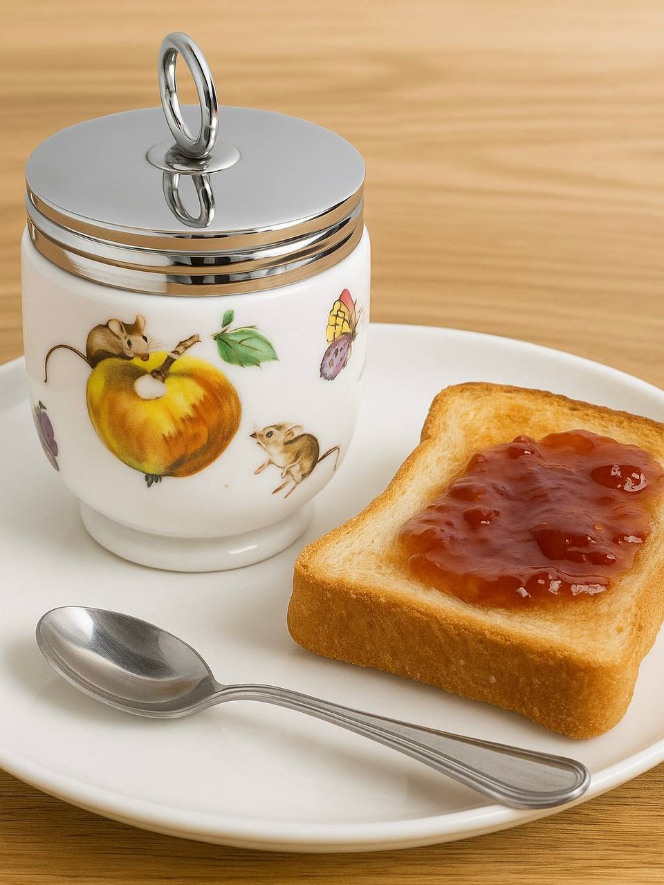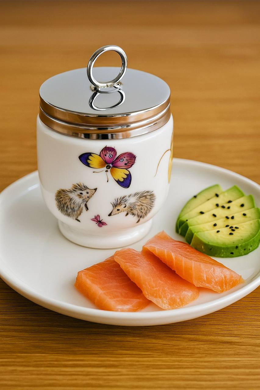 Нежный утренний ритуал в фарфоре. Фарфоровый винтажный кодлер для варки двух яиц — это предмет, который объединяет практичность кухонной утвари и эстетическую глубину прошлых эпох. Изготовленный из высококачественного костяного или белого фарфора, он отличается плотностью и лёгкостью одновременно: тонкие, но прочные стенки аккуратно удерживают тепло, а гладкая глазурь делает поверхность приятной на ощупь и визуально благородной. Конструкция рассчитана на две стандартные куриные яйца, что делает кодлер идеальным для завтраков на двоих или для тех, кто любит готовить порционные блюда. Винтажный характер проявляется в деталях — деликатная ручная роспись, едва заметная желтизна глазури, тонкие золотые канты или классические цветочные мотивы, слегка потёртые краешки — всё это придаёт изделию индивидуальность и ощущение истории. Функциональность и кулинарные преимущества. Кодлер позволяет готовить не только яйца «в мешочек», но и порционные омлеты, суфле, запечённые десерты, эгг‑бекеты с начинкой. Техника проста: яйца разбиваются прямо в фарфоровую ёмкость, при желании добавляются сливки, сыр, зелень или тонкие ломтики ветчины; кодлер закрывается крышкой и ставится в кастрюлю с тёплой водой так, чтобы вода покрывала корпус на 2/3 высоты. Благодаря равномерному распределению тепла фарфор обеспечивает однородную структуру белка и мягкую консистенцию желтка — примерно 7–8 минут дают мягкий желток, 9–12 минут — плотную текстуру. Кодлер также подходит для запекания в духовке при умеренных температурах, если это допускает производитель, что расширяет спектр рецептов — от мини‑запеканок до крем‑брюле.Эстетика сервировки и коллекционная ценность Винтажный кодлер становится центральным элементом сервировки: подайте его на фарфоровой или деревянной тарелочке с маленькой серебряной ложечкой и льняной салфеткой — результат выглядит как изысканный семейный завтрак в духе старинного дома. Для коллекционеров ценность определяют клейма на дне, характер росписи, состояние глазури и наличие оригинальных дефектов, которые подтверждают подлинность. Редкие экземпляры с авторской росписью или маркировкой известных мануфактур могут представлять интерес не только как утилитарная посуда, но и как предмет антиквариата.Уход и рекомендации по использованию Фарфор устойчив к нагреву, но чувствителен к резким перепадам температур — не вынимайте кодлер из кипящей воды напрямую на холодную поверхность. Мытьё вручную в тёплой воде с мягким средством предпочтительнее, особенно при наличии ручной росписи или золочения; абразивные материалы и сильные химикаты могут повредить декор. При хранении используйте мягкие прокладки между предметами, чтобы избежать сколов. Соблюдение этих правил сохранит внешний вид и функциональность изделия на долгие годы.
