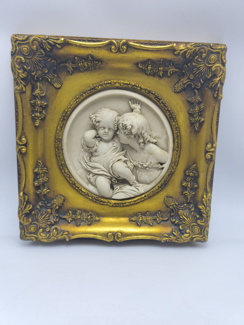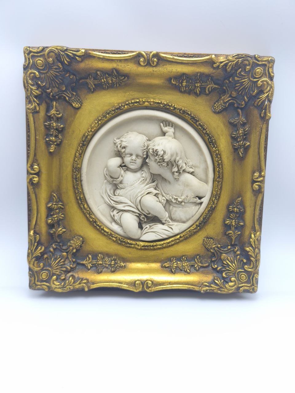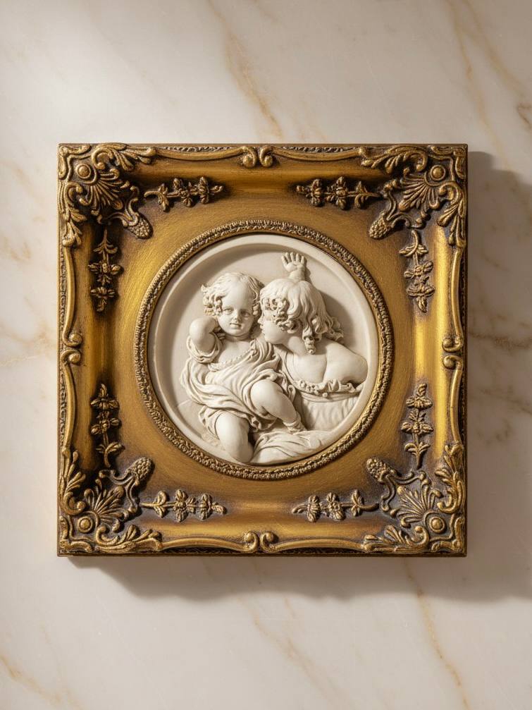 Погрузитесь в мир классического искусства с этим восхитительным антиквариатным барельефом, размером 30х30 см, «Нежность ангелов», который станет центральным элементом вашего интерьера. Изготовленный в лучших традициях декоративного искусства, он предлагает вам настоящую возможность прикоснуться к эстетике прошлых веков. Этот барельеф — не просто украшение стен, а ода мастерству древних художников, которые воплощали свои видения в прекрасных формах и линиях.Барельеф выполнен из прочного и экологически безопасного материала, который обеспечивает его долговечность и стойкость к повреждениям, чтобы вы могли наслаждаться эстетикой на протяжении долгих лет. Обрамленный изысканной рамой с сложным орнаментом, он идеально подходит для размещения в гостиной, спальне или кабинете, даря вашему дому нотку удивительной изысканности и элегантности.Широкая палитра его золотистых и кремовых оттенков позволяет ему гармонично вписаться в любой стиль интерьера, будь то классический, современный или ретро. Барельеф «Нежность ангелов» несёт в себе особую атмосферу умиротворения и спокойствия, благодаря своему идиллическому изображению детей, символизирующих чистоту и беззаботность. Тонкая проработка деталей и натуральная текстура только усиливают визуальное воздействие, оживляя изображение и приглашая вас заглянуть в мир, полный гармонии.Этот барельеф станет идеальным подарком для ценителей классического искусства и тех, кто стремится создать в своём доме уникальную атмосферу обходительности и стиля. Каждый такой экземпляр проходит тщательный контроль качества, что гарантирует не только его визуальное совершенство, но и полное соответствие строгим стандартам безопасности и экологичности.Покупка барельефа «Нежность ангелов» — это не только инвестиция в ваш интерьер, но и приобретение настоящего произведения искусства, которое приносит в ваш дом частицу истории и воспоминания, заставляющие ценить красоту и гармонию.