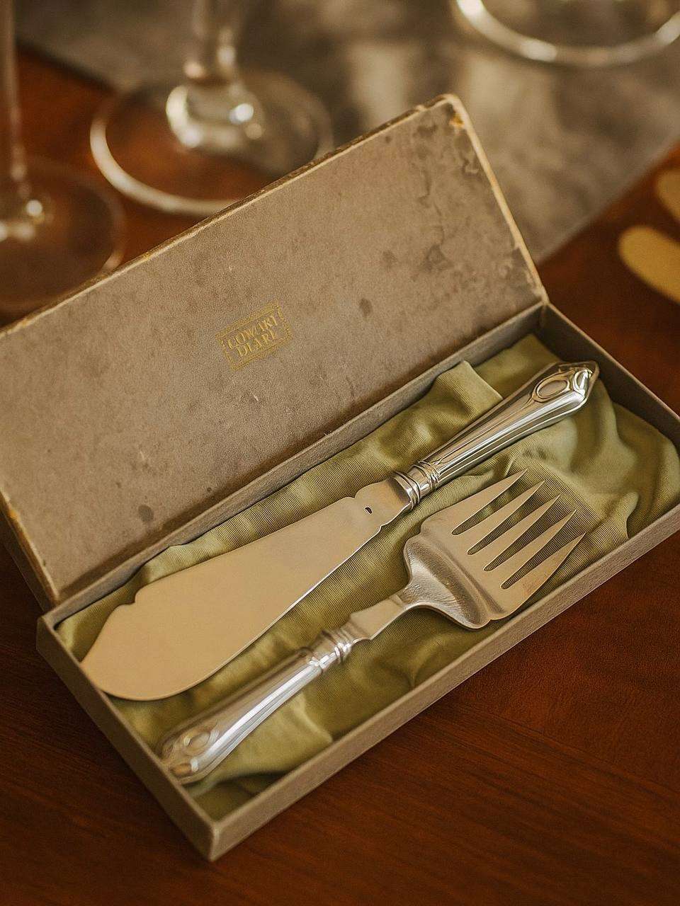 Этот утончённый винтажный набор сервировки для рыбы станет настоящим украшением вашего стола и придаст обеду или ужину особое очарование. Изготовленный в лучших традициях столового искусства, набор включает в себя вилку и нож для рыбы, выполненные с использованием техники серебрения. Такой набор может стать отличным дополнением как к вашей повседневной столовой посуде, так и к праздничному сервизированию, создавая престижную и изысканную атмосферу за вашим столом.Фирменная упаковка Cowary Duarе подчёркивает всю утончённость и исключительный стиль набора. Каждый элемент тщательно оформлен, а ручки выполнены в классическом дизайне с изысканным узором, что делает этот набор великолепным образцом традиционного ювелирного искусства. Элегантность формы и благородство материала создают уникальную эстетику, которая всегда будет радовать ваш взгляд и подчеркивать вкус хозяина дома.Изготовленный из качественного материала, набор гарантирует долговечность и надёжность в использовании. Серебрение не только придаёт приятный блеск, но и защищает приборы от коррозии, обеспечивая их долгий срок службы. Кроме того, его удобно чистить, а хранение в оригинальной коробке позволяет сохранить его первоначальный вид на долгие годы.Это идеальный подарок для ценителей классики и любителей изысканных решений. Такой набор станет отличным презентом на свадьбу, годовщину, день рождения или новоселье. Подарите вашим близким частичку прошлого, обрамлённую в стиль и качество!