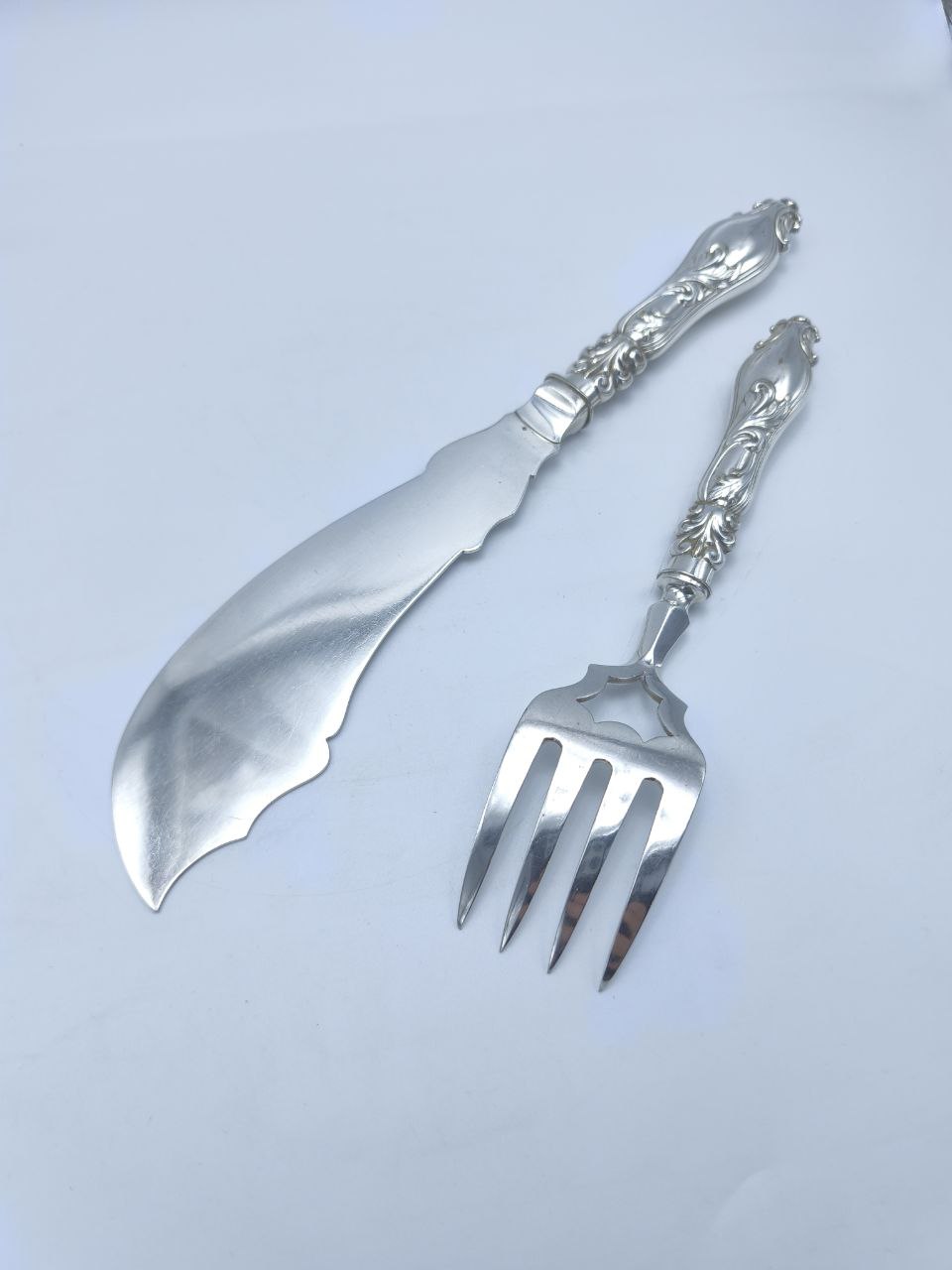 Представляем вашему вниманию уникальный винтажный комплект для сервировки рыбы, состоящий из ножа (36х6см) и вилки (25х5см), выполненных с особой тщательностью и украшенных изысканным серебрением. Этот набор станет настоящей находкой для ценителей антиквариата и коллекционеров, а также станет великолепным дополнением к любой столовой сервировке, придавая ей торжественность и изящество.Комплект выполнен из высококачественных материалов, что гарантирует его долговечность и надежность, а серебрение обеспечивает защиту от коррозии, удерживая блеск на долгие годы использования. Красивая гравировка на поверхности приборов привлекает внимание к деталям и демонстрирует мастерство рукодельников, создававших этот шедевр.Эргономичная форма вилки и ножа обеспечивает удобство использования, позволяя быстро и без лишних усилий разделывать и подавать рыбу к вашему столу. Ручки приборов украшены изысканным орнаментом, вдохновленным классическими традициями, что придаёт изделиям изысканного шарма и утонченности. Эти приборы не просто полезные столовые принадлежности, но и предметы искусства, сочетающие в себе функциональность и эстетику.Подарите себе и своим близким возможность насладиться каждой деталью тщательно продуманной сервировки, делая каждую трапезу по-настоящему особенной. Винтажный набор для рыбы также станет отличным подарком для истинных ценителей коллекционных вещей и тех, кто стремится придать своему дому особый колорит и стиль.Будь то торжественное застолье или уютный семейный ужин, этот набор не останется незамеченным и добавит изысканности в любую обстановку. Зайдите в мир утонченного стиля и элегантности с этим винтажным набором, который станет изюминкой вашей коллекции. Не упустите возможность приобрести настоящее произведение искусства!