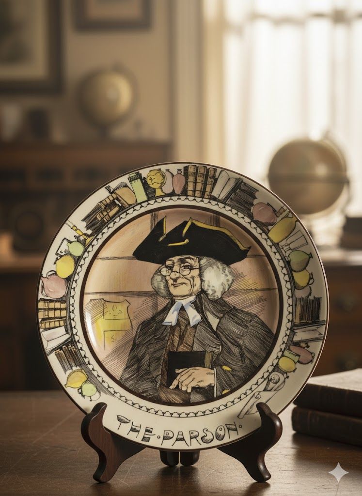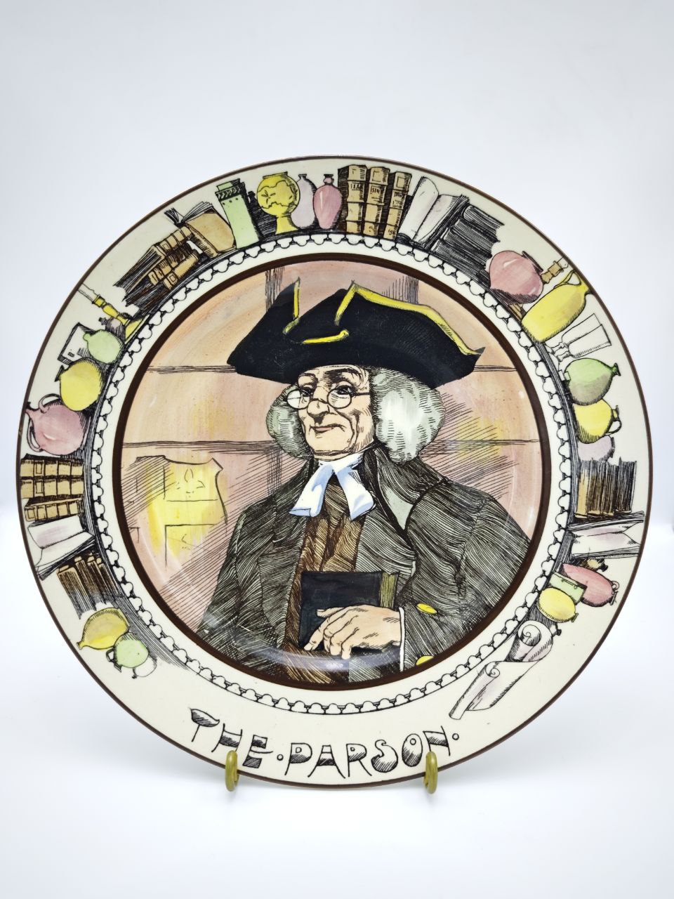 Редкая декоративная тарелка легендарной фабрики Royal Doulton, созданная в Англии в 1950–е годы. Сюжет «The Parson» выполнен в характерной для бренда манере — мягкие контуры, насыщенная ручная роспись, тонкие исторические детали. Фарфор сохраняет глубину красок и выразительность иллюстрации, благодаря чему предмет эффектно смотрится в интерьере. Коллекционная модель для ценителей английских сюжетных серий.