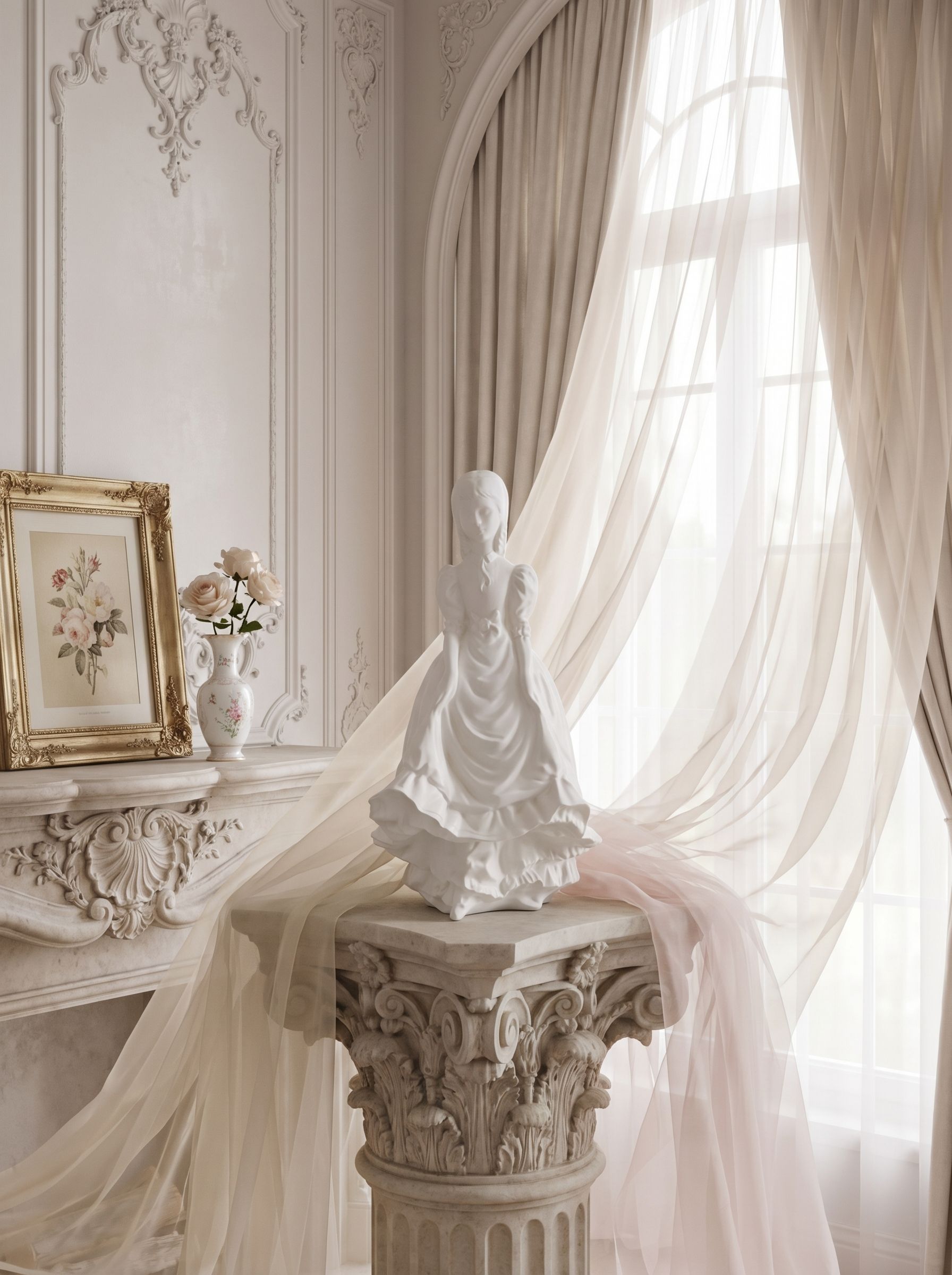 Фарфоровая статуэтка выполнена из бисквитного фарфора и представляет собой изящный образ девушки в классическом платье с мягкими складками. Матовая поверхность подчёркивает пластику формы и деликатную проработку деталей. Высота изделия составляет 15 см, благодаря чему оно гармонично вписывается в интерьер и декоративные композиции. Лаконичный белый цвет позволяет легко сочетать статуэтку с различными стилями оформления. Состояние отличное.