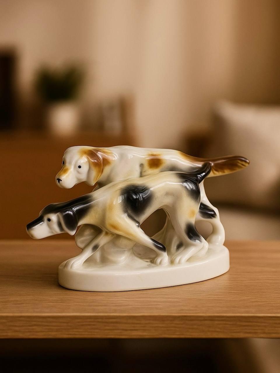 Эта фарфоровая статуэтка двух охотничьих собак представляет собой истинное произведение искусства, которое удивляет своим реализмом, динамикой и эстетическим совершенством. Фигуры собак, словно застывших в моменте охоты, переносят вас в природу и передают дух единства с окружающим миром. Скульптура создана мастерами Англии, которые воплотили в этом предмете традиционные подходы работы с фарфором и богатый опыт художественного исполнения.Охотничьи собаки выглядят выразительно: их плавные движения, четко проработанные мышцы и характерные черты породы выполнены с исключительной точностью. Специально подобранная цветовая гамма создает эффект натурального окраса, добавляя реалистичности композиции. Глянцевая поверхность изделия подчеркивает детали и придает статуэтке утонченность.Фигурка станет прекрасным украшением любого интерьера, добавляя в него нотку динамики, элегантности и символизма. Охотничьи собаки традиционно ассоциируются с надежностью, энергичностью и преданностью, что делает эту статуэтку не только красивым аксессуаром, но и предметом, способным подчеркнуть ваши ценности.Изготовленная из высококлассного фарфора, статуэтка отличается долговечностью и устойчивостью к внешним воздействиям. Она станет замечательным подарком для коллекционеров, ценителей искусства и любителей животных. Это предмет, способный украсить ваш дом, офис или быть частью подарочной композиции для человека, который знает толк в утонченности и стиле.Элегантная работа мастеров Англии, эта статуэтка — воплощение традиций и высокого художественного мастерства. Если вы ищете декоративный предмет, который сочетает в себе выгоду вложения, символизм и красоту, то этот фарфоровый аксессуар станет идеальным выбором.