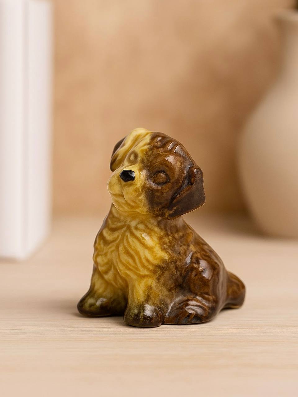 Фарфоровая статуэтка «Очаровательный щенок» — это утонченное произведение английского фарфорового искусства, которое способно оживить ваш интерьер теплотой и уютом, привлекая внимание своей милой и выразительной формой. Фигурка выполнена из высококачественного английского фарфора, что гарантирует её долговечность и эстетическую ценность.Этот миниатюрный щенок излучает трогательную нежность и спокойствие, передавая момент простого счастья и доброй привязанности. Его округлая форма и плавные линии гармонично подчеркивают атмосферу домашнего уюта и тепла. Детальная проработка шерсти, нанесённая вручную, добавляет изделию реалистичности. Цветовая палитра, состоящая из глубоких золотистых и шоколадно-коричневых тонов, оживляет фигурку, делая её настоящим украшением любого пространства.Статуэтка имеет компактные размеры, что делает её идеальным элементом декора для гостиной, шкафа с коллекционными изделиями, письменного стола или небольшой витрины. Она может выступать как центральная деталь интерьерной композиции или гармонично дополнить ваш существующий дизайн.Благодаря английскому происхождению предмет воплощает собой качество и стиль, которые никого не оставят равнодушным. Эта статуэтка станет прекрасным выбором для коллекционеров, любителей декоративного искусства и поклонников домашнего декора. Она также является великолепным подарком, способным выразить тёплые чувства и порадовать близкого человека своей изысканностью.Если вы хотите добавить в свой дом нотку комфорта, тепла и английского шарма, эта статуэтка станет идеальным решением. Она не только украсит ваш интерьер, но и сохранит память о традициях английского фарфорового мастерства, которое ценится во всем мире.