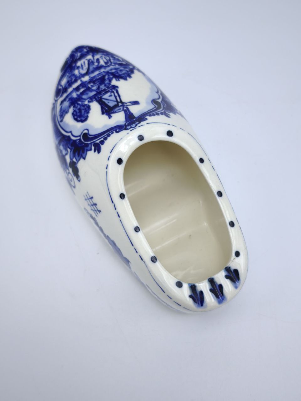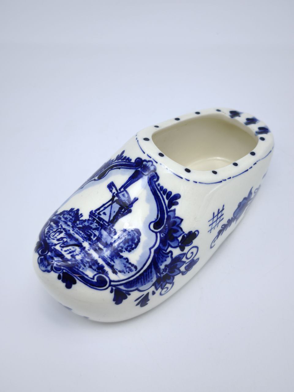 Элегантная фарфоровая статуэтка в виде традиционного голландского кломпа – это не просто предмет декора, но настоящее произведение искусства, воплощающее утонченность и дух традиций. Кломп, расписанный вручную в нежной синей гамме, выделяется великолепной детализацией и выразительными узорами. Роспись на фарфоре изображает узнаваемые голландские мотивы – старинные мельницы, цветочные элементы и орнаменты, которые переносят нас в атмосферу сказочного уюта европейской сельской жизни.Этот аксессуар станет яркой деталью вашего интерьера, идеально подходящей для оформления настольной композиции, полок или витрин. Компактный размер позволяет разместить фигурку как в небольших пространствах, так и в центре внимания, где она непременно привлечет восхищенные взгляды гостей. Каждый элемент рисунка выполнен с вниманием к мельчайшим деталям, а насыщенность синих оттенков делает статуэтку ещё более эффектной и нежной.Кломп – символ трудолюбия и искренности, а в интерпретации фарфора он приобретает особую ценность. Такая фигурка станет отличным подарком как ценителю искусства, так и человеку, который хочет добавить в дом частичку культурного наследия Европы. В качестве украшения она гармонично впишется в интерьер, оформленный в классическом, прованс или современном стиле.Фарфоровый кломп – это красиво, стильно и многозначно. Её можно подарить на любой случай: день рождения, новоселье, профессиональный праздник или же просто для того, чтобы выразить свою заботу и внимание. Эта статуэтка расскажет свою историю, даря уют и эстетическое наслаждение каждому, кто на неё посмотрит. Добавьте в свой дом или коллекцию частичку гармонии и красоты с этой утонченной фарфоровой фигуркой!