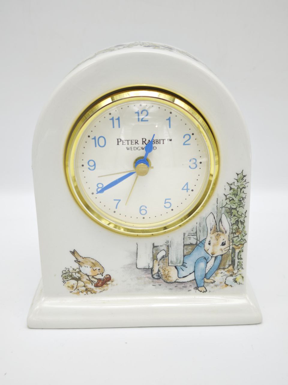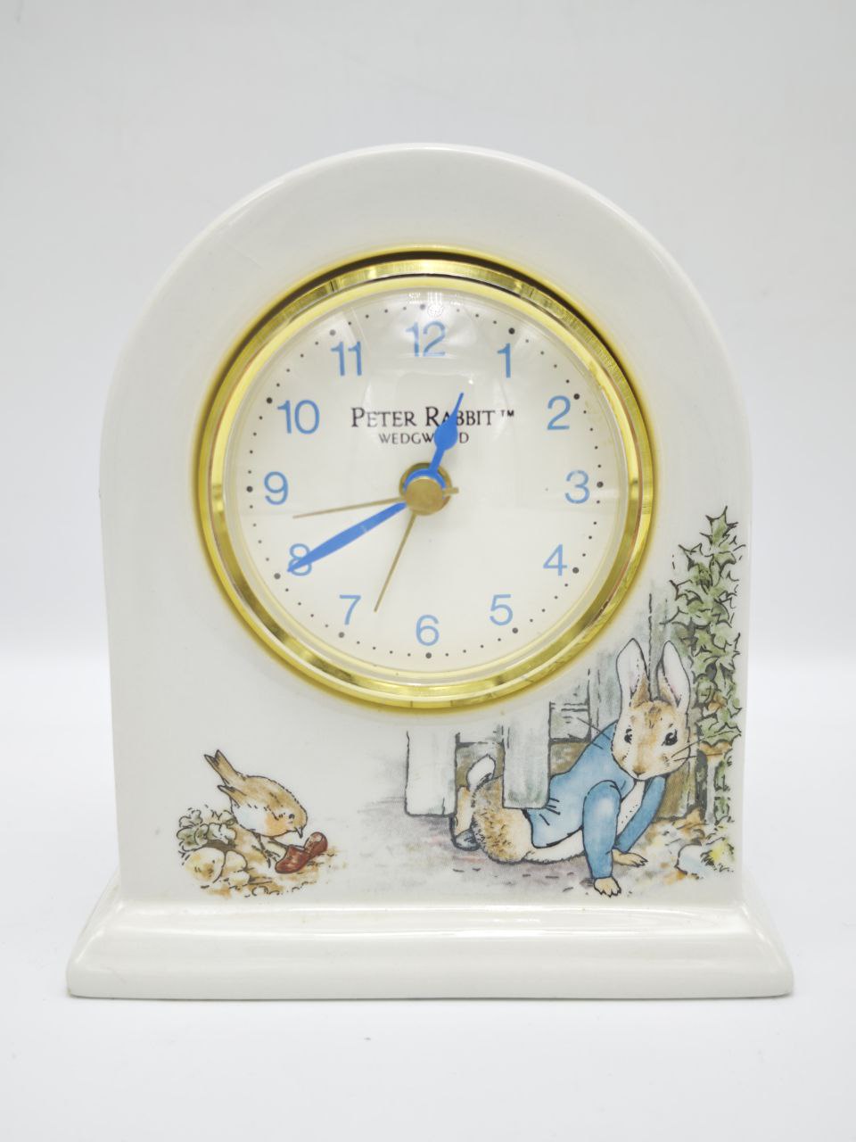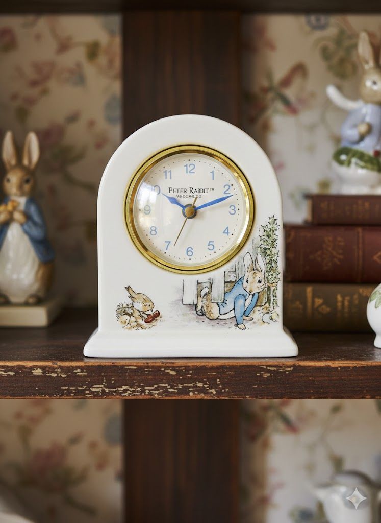 Очаровательные часы из знаменитой серии «Peter Rabbit», созданные легендарной мануфактурой Wedgwood. Нежная фарфоровая форма украшена оригинальными иллюстрациями по мотивам Беатрис Поттер, выполненными методом деколи. Изделие произведено в Англии, в 1990-е годы, что подтверждается фирменным клеймом Frederick Warne & Co. 1993. Эти часы привнесут светлую ностальгию и станут элегантным акцентом в коллекции фарфора или интерьере детской комнаты. Небольшой скол на основании — естественный след времени, не влияющий на эстетику экспоната.