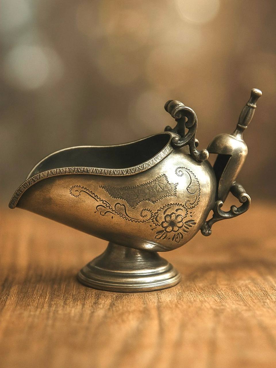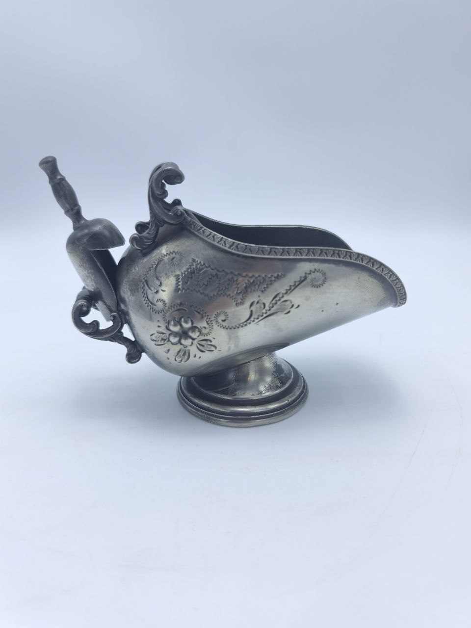 Эта изысканная винтажная сахарница, размером 11х14см, представляет собой воплощение элегантности и утонченности, отражая атмосферу ушедших эпох. Изготовленная по стандартам прошлого века, она выполнена с использованием техники серебрения, придающей изделию благородный, сияющий вид, который сохраняет свою привлекательность на протяжении многих лет.Сахарница имеет классическую форму, отличающуюся изящными линиями и продуманными деталями, которые делают её настоящим произведением искусства. Корпус украшен тонким орнаментом, напоминающим о романтике старинных дворцов и раритетных находках. По бокам можно увидеть элегантные ручки, выполненные в форме стилизованных завитков, которые не только добавляют эстетики, но и обеспечивают удобство в использовании.Крышка сахарницы плотно прилегает к основе, имея легкую сферическую форму и украшенную изысканным букетом рельефных цветочных мотивов. Верхняя часть крышки увенчана небольшой элегантной фигуркой, что придаёт ей дополнительное изящество и уникальность. Вся работа над этой сахарницей выполнена с большим вниманием к деталям, что характерно для лучших образцов декоративного искусства.Благодаря процессу серебрения, сахарница имеет устойчивую к окислению поверхность, которая сохраняет блеск и эстетическую привлекательность на протяжении длительного времени. Этот предмет станет настоящим украшением любого чаепития или кофейного времени, привлекая внимание гостей и разбавляя повседневную обстановку нотками аристократической роскоши.Кроме своего функционального назначения, сахарница может выступать и самостоятельным элементом декора, гармонично дополняя коллекцию винтажных или антикварных предметов в интерьере. Она прекрасно вписывается в любой стиль оформления, будь то классический, эклектичный или современный, добавляя ему особого шарма. Такая сахарница станет идеальным подарком для ценителей истории и искусства, тех, кто любит окружать себя вещами с душой и историей.Внушительных размеров и в то же время уникально легкая, эта сахарница станет центром внимания на вашей обеденной зоне, украшая её богатейшей фактурой и историческим духом. В коллекции или в одиночку — она выглядит выразительно и органично, подчеркивая ваш безупречный вкус и любовь к винтажным вещам.