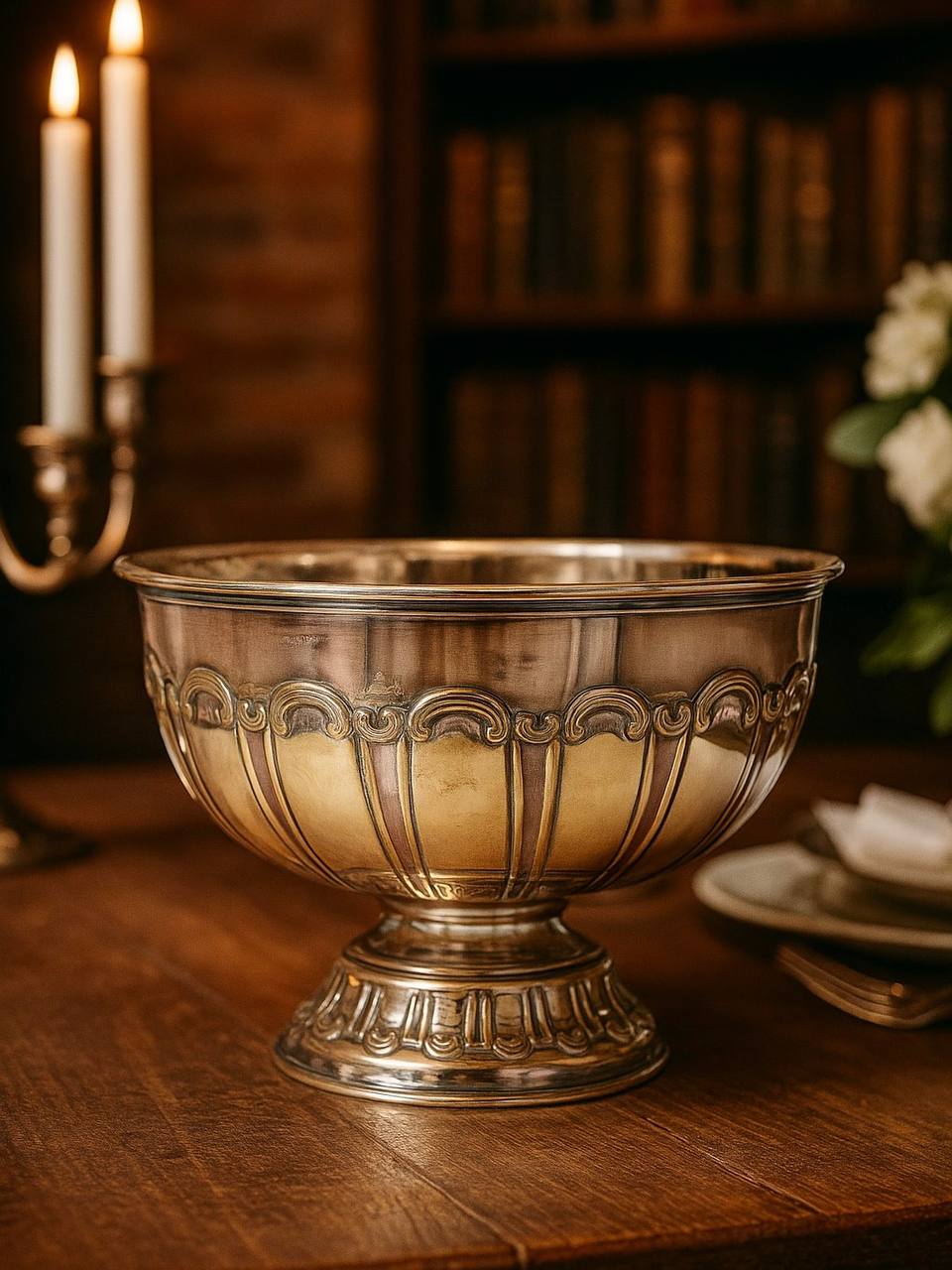 Представляем вашему вниманию настоящее произведение искусства — винтажную вазу с серебряным покрытием, которая станет изюминкой вашего интерьера. Эта ваза — не просто функциональный предмет, а подлинное отражение классической европейской эстетики и мастерства ремесленников прошлого.Изысканный дизайн вазы вдохновлен стилем, который царствовал в эпоху великих европейских мастеров. Сложные узоры и гармоничные линии добавляют ей благородства и величия, делая её идеальным элементом декора. Серебряное покрытие придает вазе не только исключительный блеск, но и долговечность, создавая эффект, который радует глаз.Эта ваза прекрасно подходит для хранения фруктов, подчеркивая их натуральную красоту и разноцветие. Однако ее истинная уникальность заключается в способности служить самостоятельным украшением — на каминной полке или журнальном столике она всегда займет центральное место, привлекая к себе взгляды и восхищение каждого гостя.Станьте обладателем этой изящной вазы и добавьте в свой дом нотку роскоши и стиля. Она станет замечательным подарком для ценителей антиквариата и искусства, которыми вы хотите выразить свое внимание и уважение. Каждая деталь этой вазы — свидетельство превосходного мастерства и любви к прекрасному, которые царили в прошлых столетиях.Не упустите возможность внести в свой интерьер частицу истории и изысканности. Пусть эта ваза станет не только украшением вашего дома, но и символом утонченного вкуса и стремления к прекрасному.