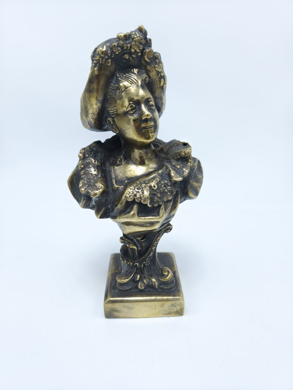 Погрузитесь в атмосферу изысканности и утонченной роскоши с этой винтажной статуэткой из бронзы. Элегантная дама в великолепной шляпе – не просто предмет декора, а настоящее произведение искусства, которое подчеркнет тонкий вкус своего владельца.Каждая деталь тщательно проработана, а благородный блеск бронзы придает изделию особый шарм и историческую ценность. Эта статуэтка станет ярким акцентом вашего интерьера, идеально впишется в классический или эклектичный стиль и вызовет восхищение у гостей.Подобные редкие находки – настоящая мечта для коллекционеров и ценителей антиквариата. Добавьте в свою жизнь частичку прошлого, которая расскажет свою уникальную историю.Идеально подходит в качестве роскошного подарка или для создания уютной атмосферы с налетом винтажной элегантности. Упустите момент – и шанс обладать этим сокровищем может больше не повториться!