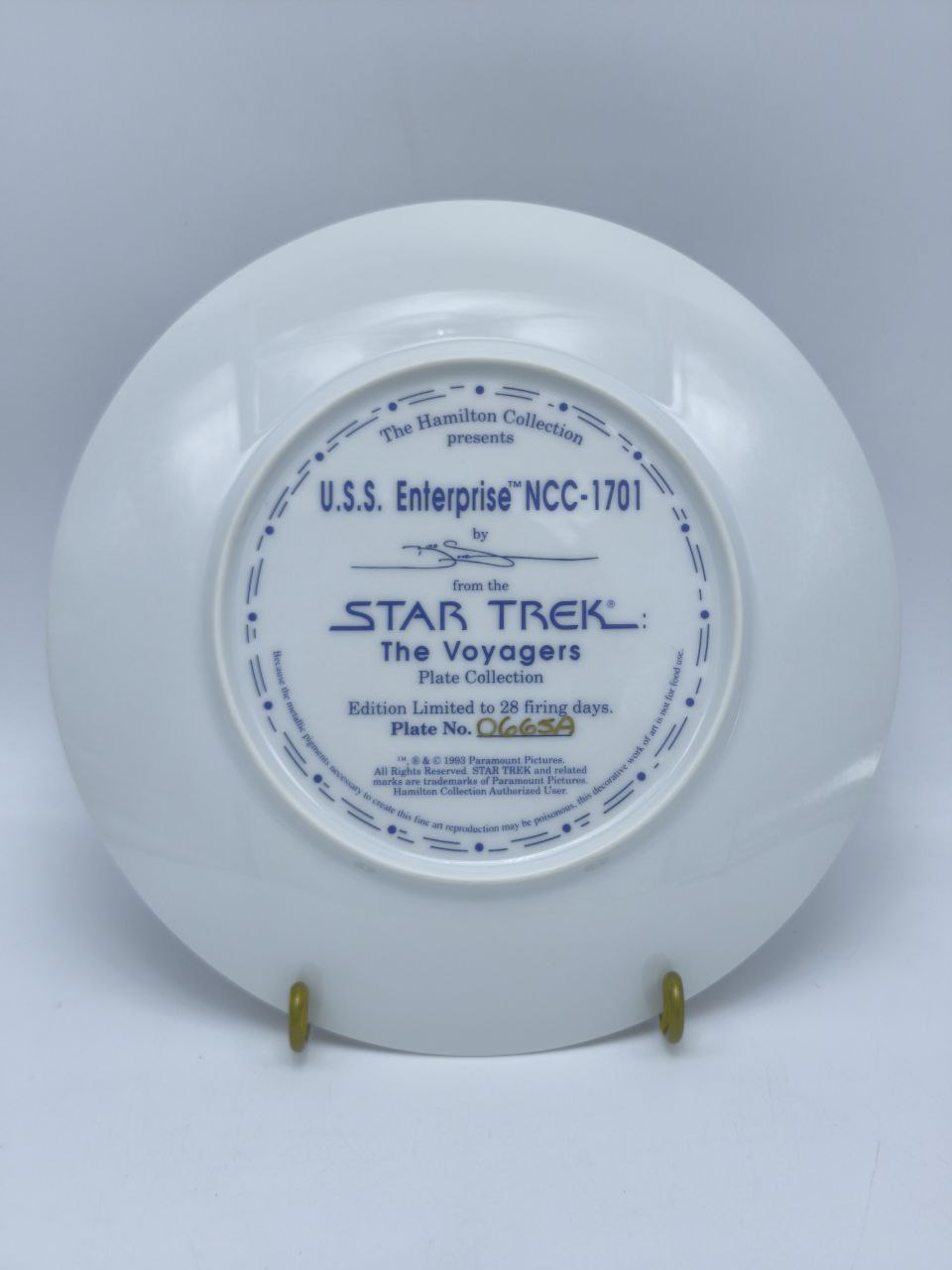 The Hamilton Collection представляет эксклюзивную коллекционную тарелку с изображением легендарного космического корабля USS Enterprise NCC-1701 из культового сериала STAR TREK. Тарелка входит в серию The Voyagers и является частью ограниченной коллекции.