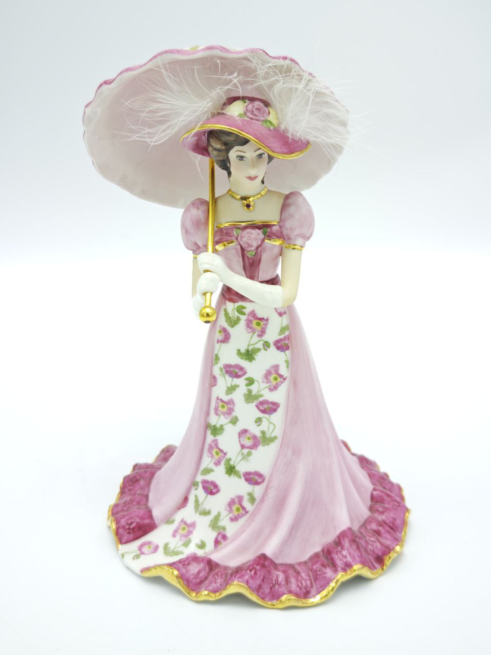 Коллекционная фарфоровая статуэтка-колокольчик Crimson Belle с зонтом и перьями, ручная роспись и позолота, высота 17 см, США, 1995 год, Lena Liu