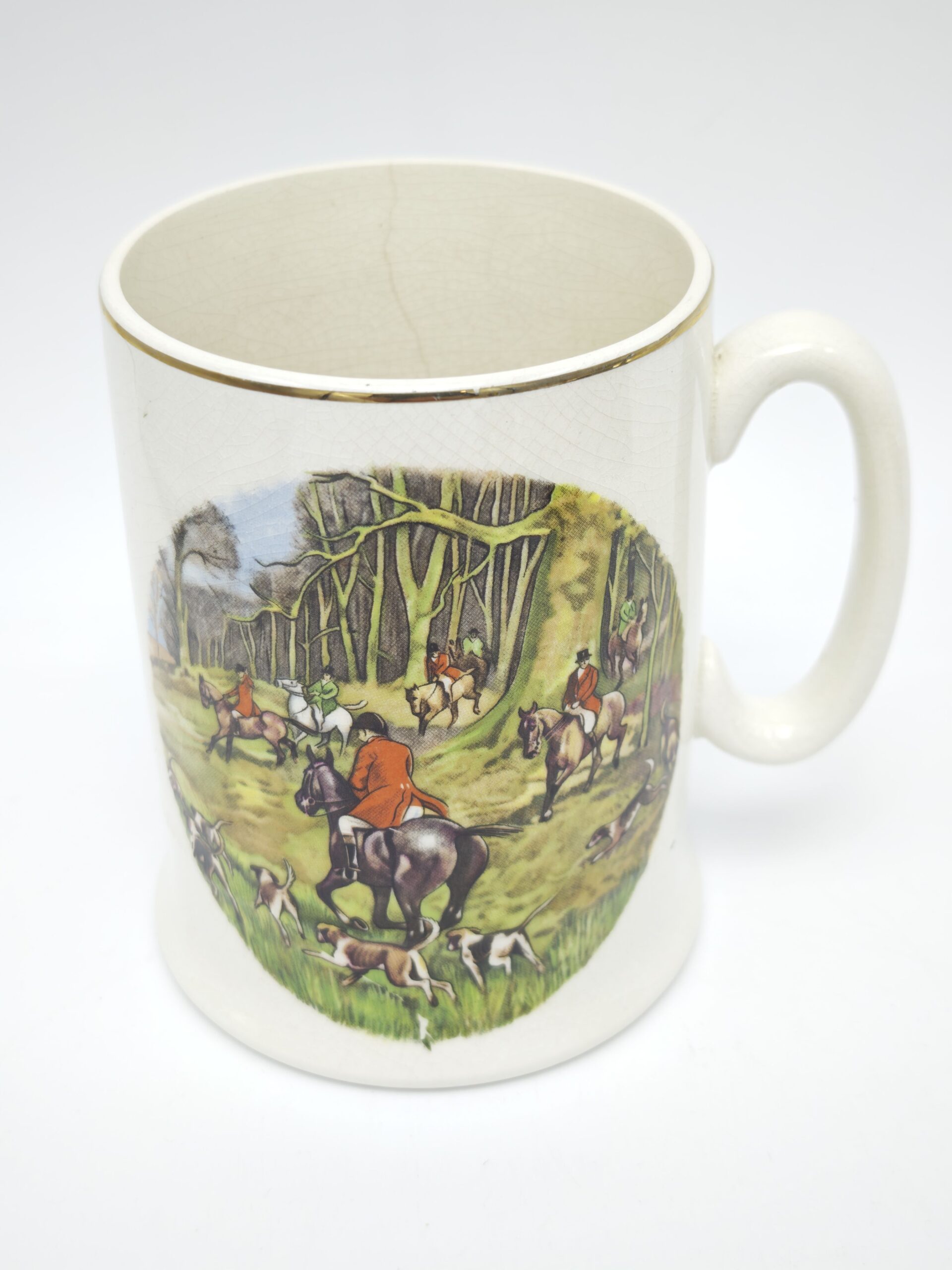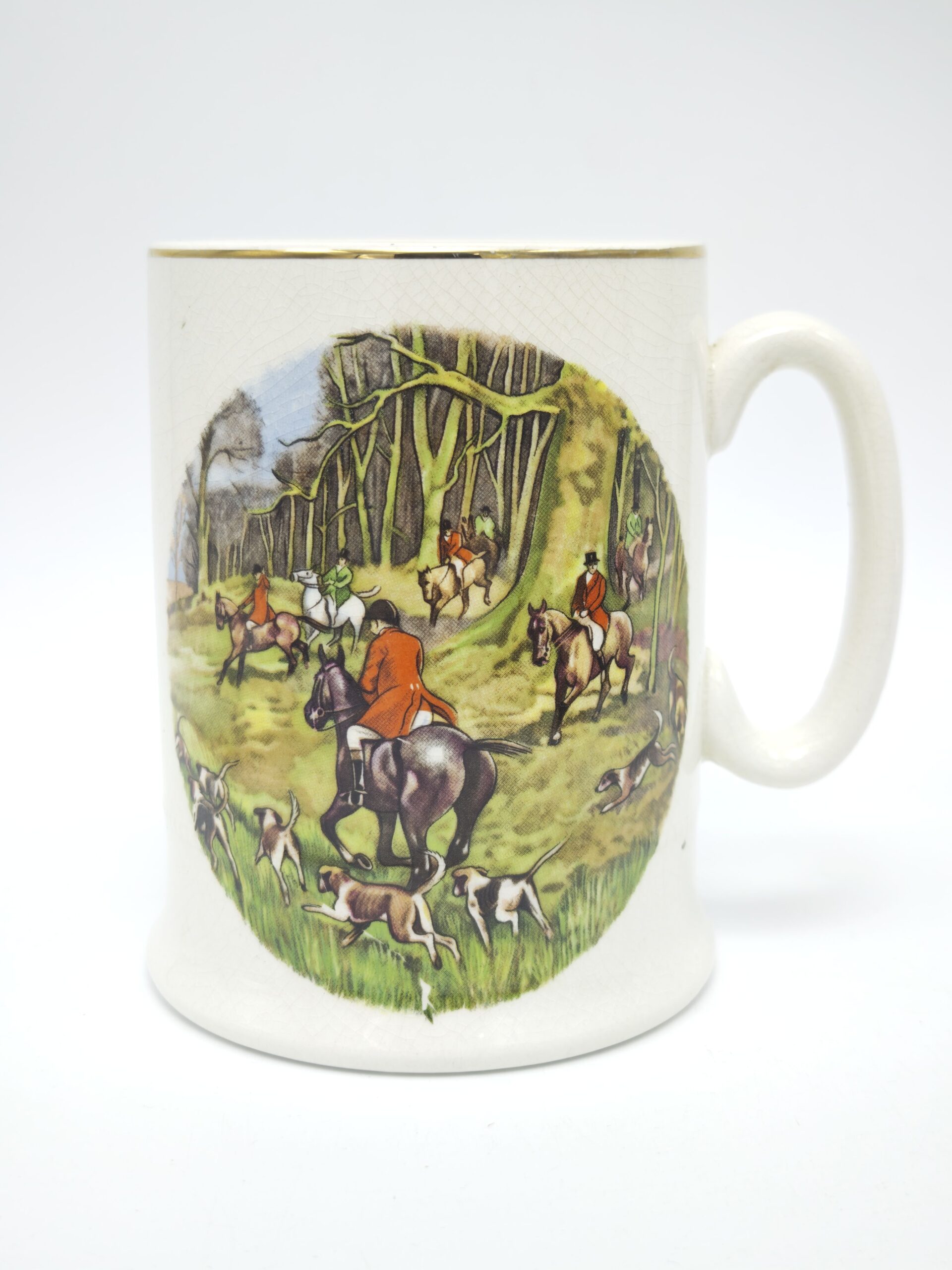 Коллекционная пивная кружка «Английская охота». Фарфор. Деколь. Позолота. Англия. Высота 12.5 см