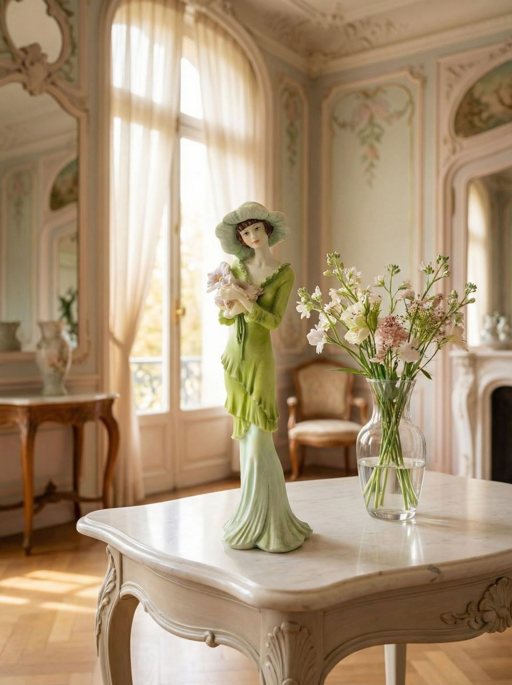 Главная // Интернет-магазин // Новинки // Коллекционная статуэтка девушка с цветами в зелёном платье из холодного фарфора 29 см Leonardo Collection Англия 2002 год
