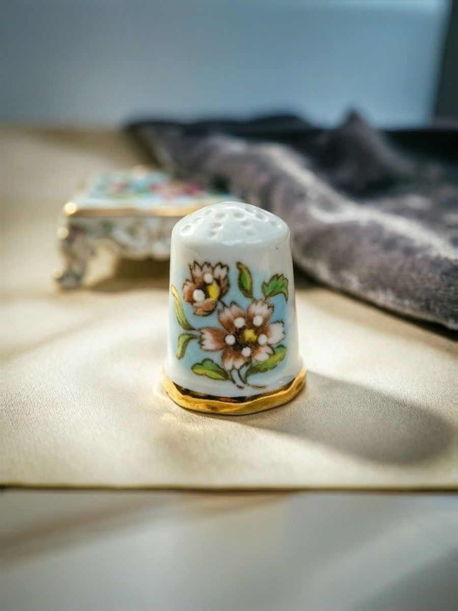 Изысканный винтажный напёрсток от знаменитой английской мануфактуры Longton Hall, выпущенный в 1990 году. Классическая цветочная тема воплощает традиционную английскую любовь к садам и природе.