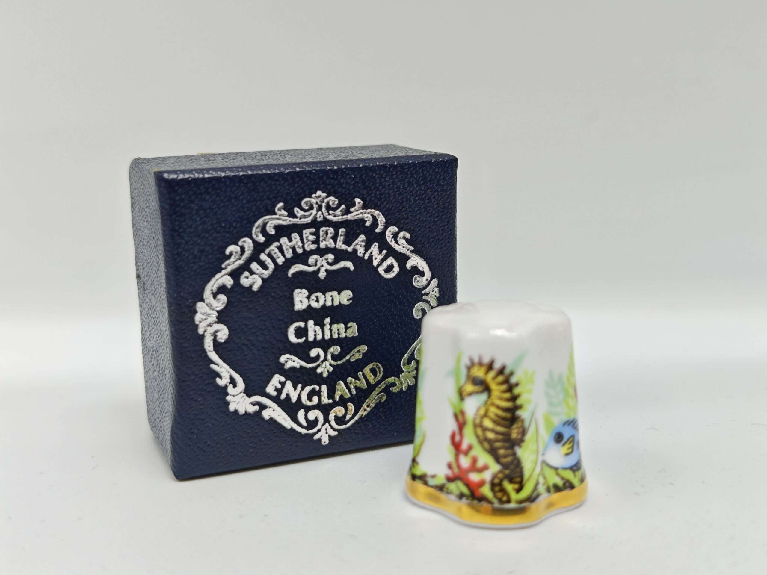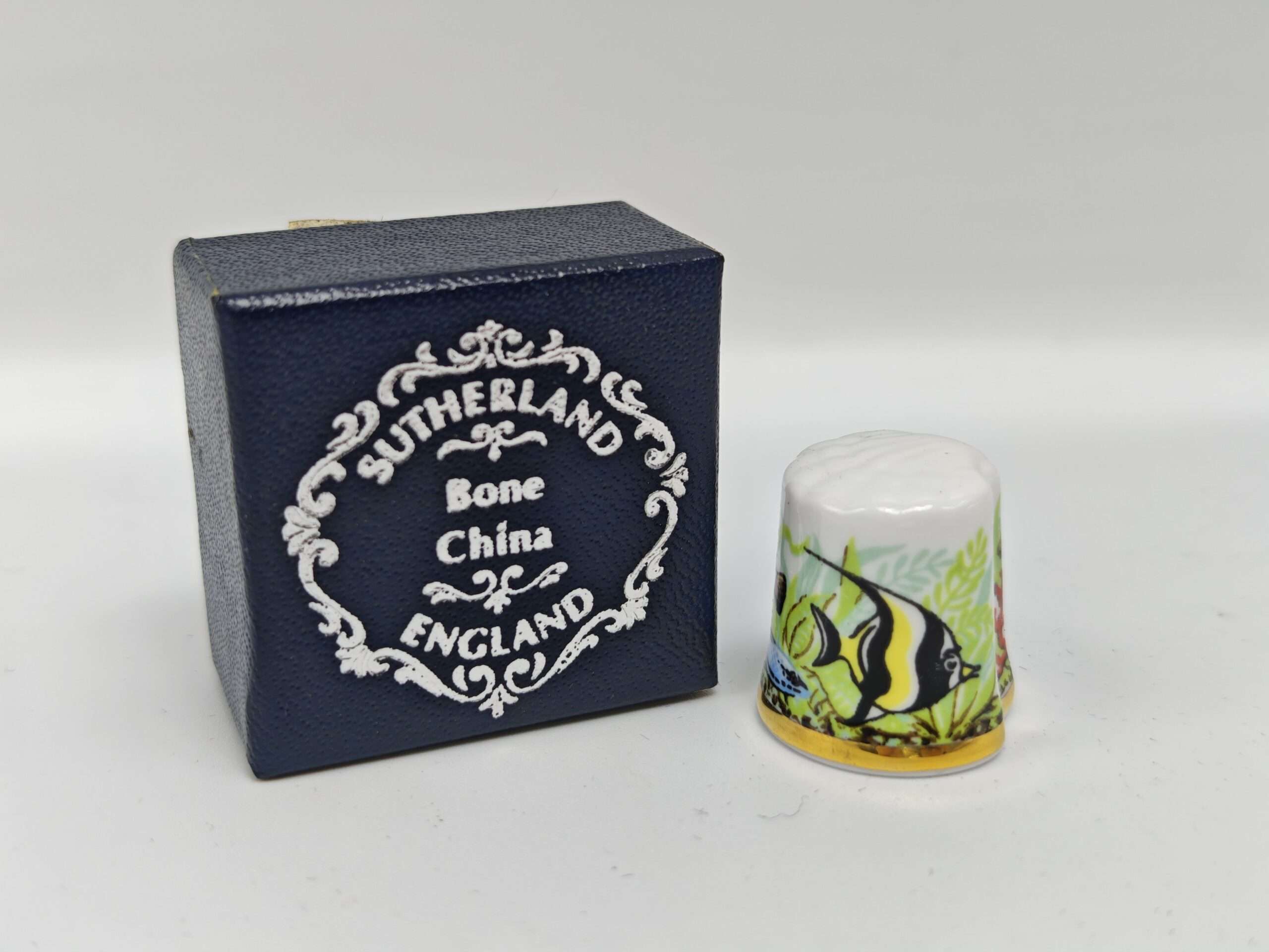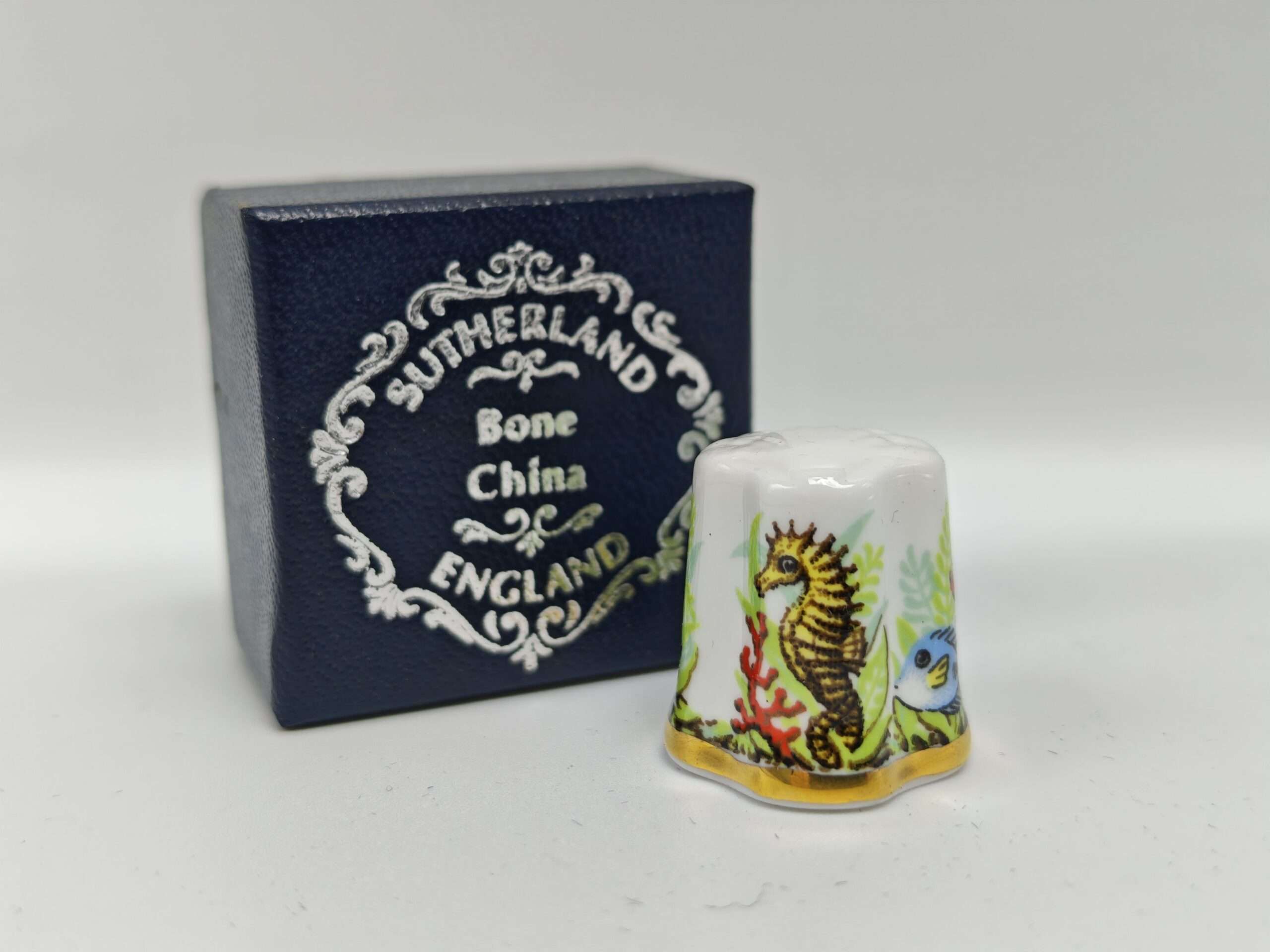 Коллекционный винтажный наперсток. Фарфор. Рыбки. Ракушка. Англия Высота 2.6 см