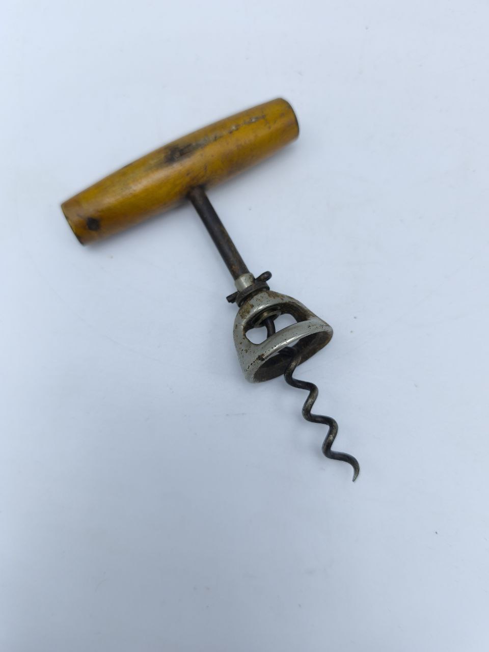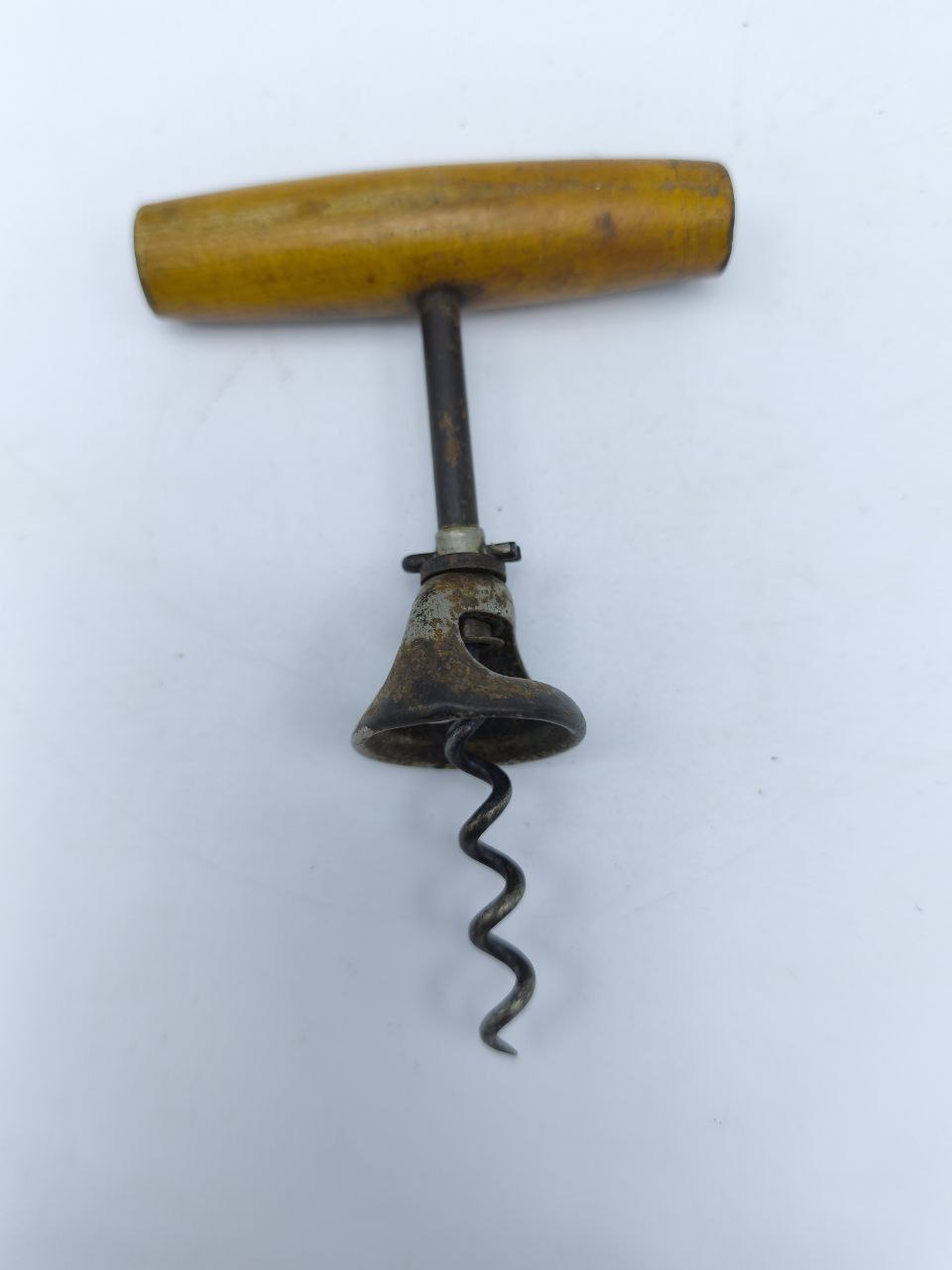 Редкий штопор-колокольчик с деревянной T-образной ручкой, сохранившийся в отличном виде. Изготовлен в Германии в 1930–1950-е годы, он сочетает в себе простоту механики и изящество винтажной кухонной утвари. Такой предмет станет жемчужиной коллекции или стильным акцентом интерьера.