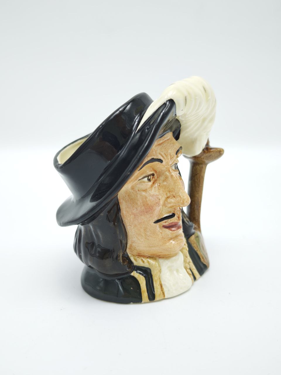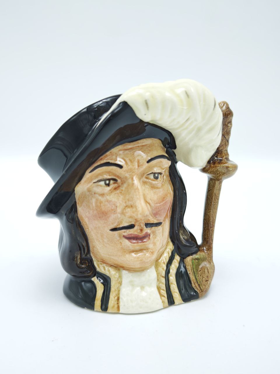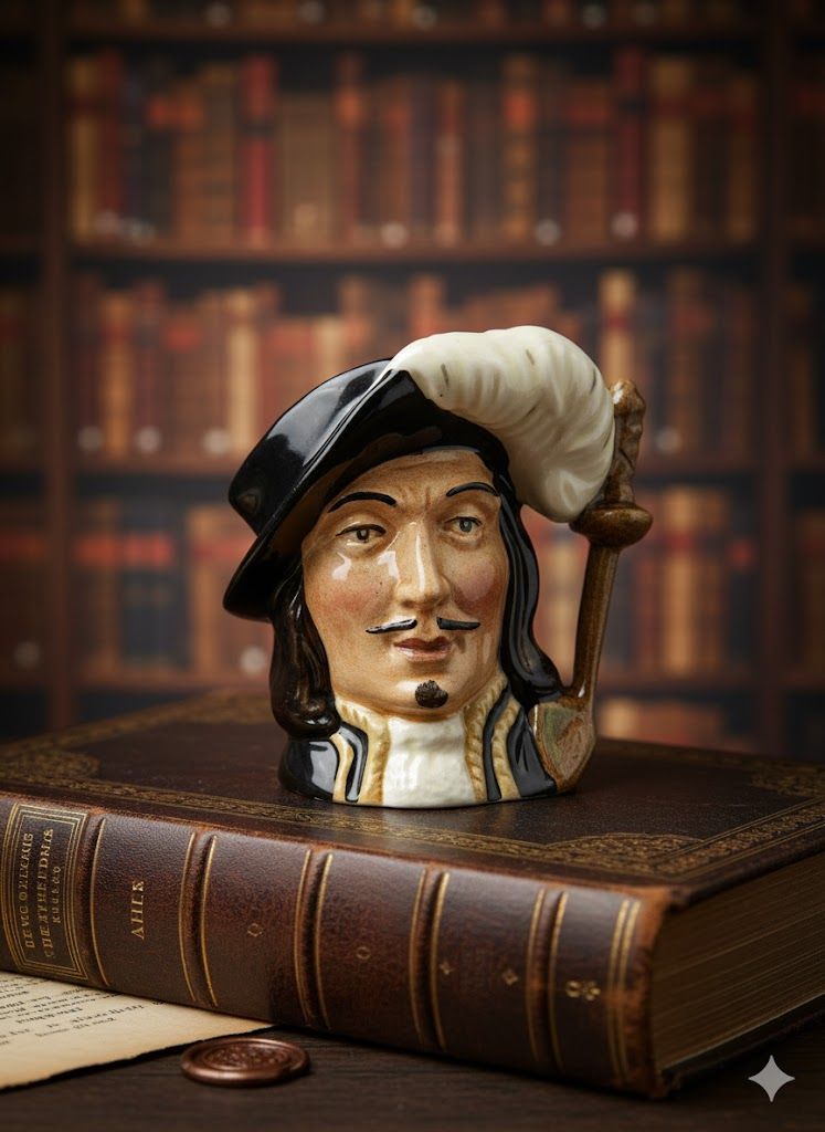 Перед вами маленькое чудо английской керамики — та самая мини-кружка «Athos» от Royal Doulton, созданная в эпоху, когда вещи делали не спеша, с уважением к форме и характеру. Выразительный взгляд, тяжёлый мушкетёрский перо-плюмаж, блеск старинной глазури — всё это создаёт ощущение, будто Атос только что вернулся с дуэли. Произведённая в Англии в 1950-х годах, эта миниатюра несёт в себе настроение старой Европы и её благородную элегантность. Коллекционный предмет, который добавляет интерьеру не просто стиль — а историю.