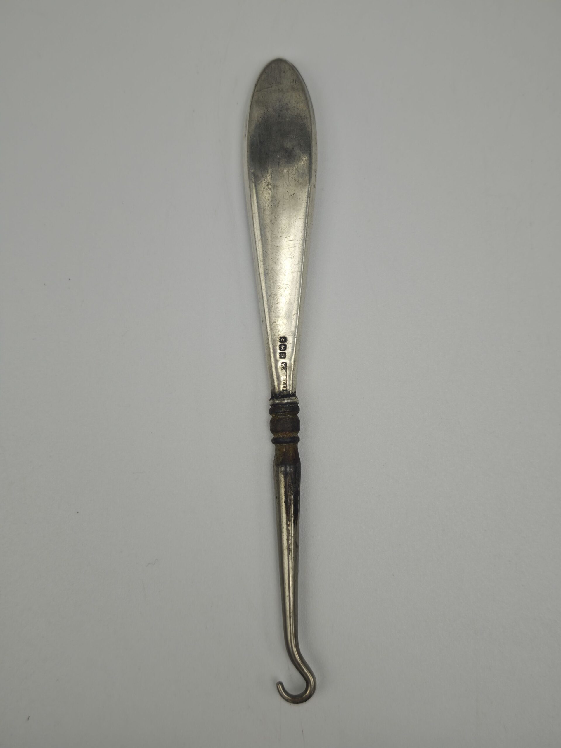 В конце XIX начале XX века такие крючки были частью гардеробного набора. Изначально он предназначался для расшнуровки обуви, в дальнейшем- для перчаток, корсета. С помощью крючков дамы застегивали пуговицы, а мужчины мундиры.