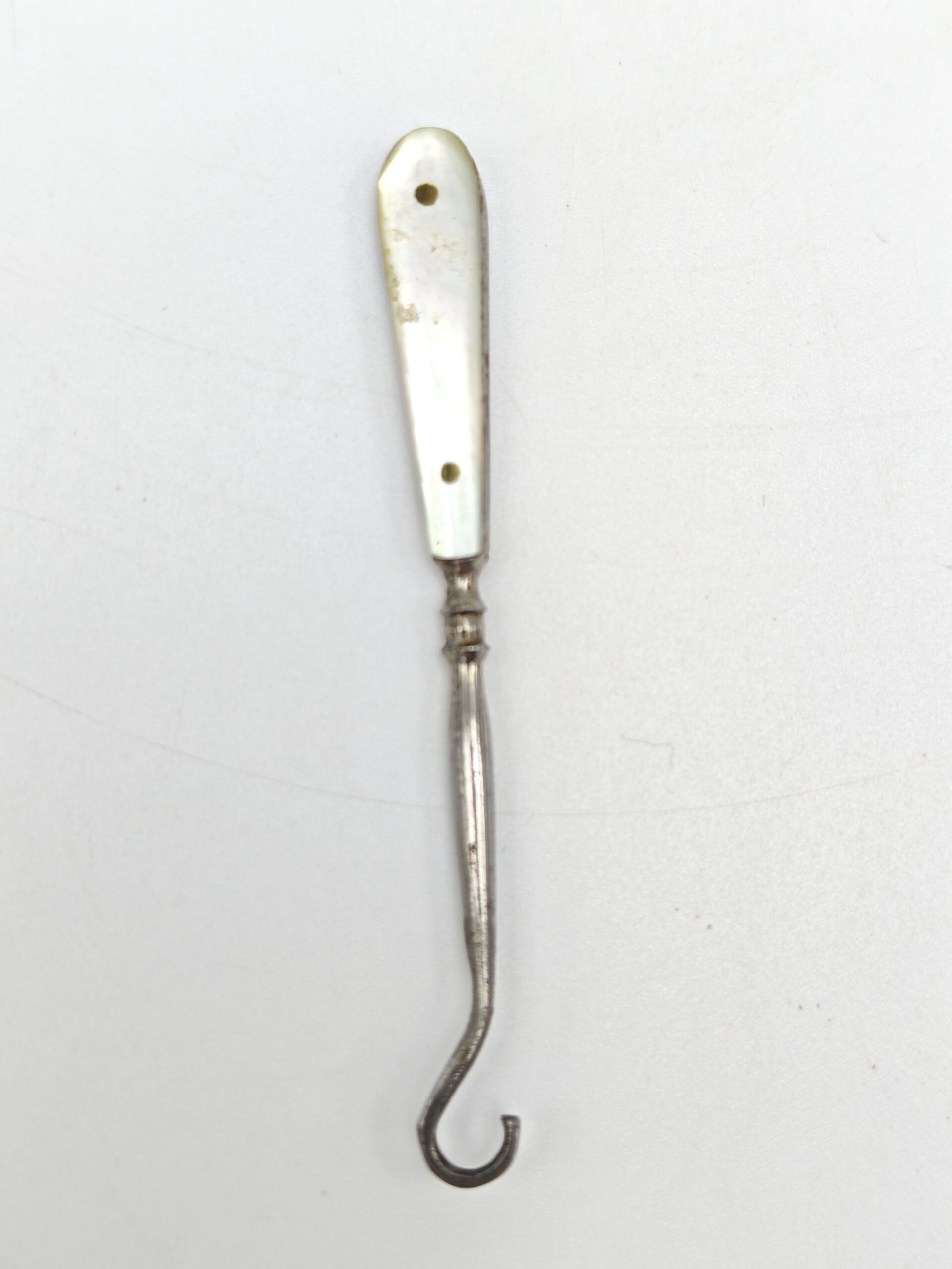 В конце XIX начале XX века такие крючки были частью гардеробного набора. Изначально он предназначался для расшнуровки обуви, в дальнейшем- для перчаток, корсета. С помощью крючков дамы застегивали пуговицы, а мужчины мундиры.