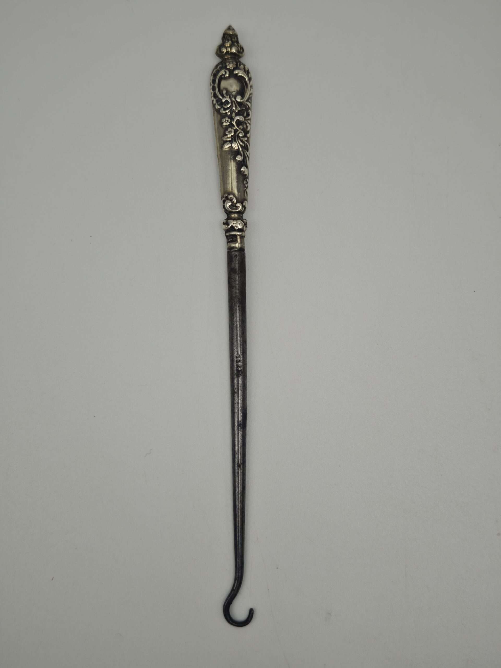 В конце XIX начале XX века такие крючки были частью гардеробного набора. Изначально он предназначался для расшнуровки обуви, в дальнейшем- для перчаток, корсета. С помощью крючков дамы застегивали пуговицы, а мужчины мундиры.