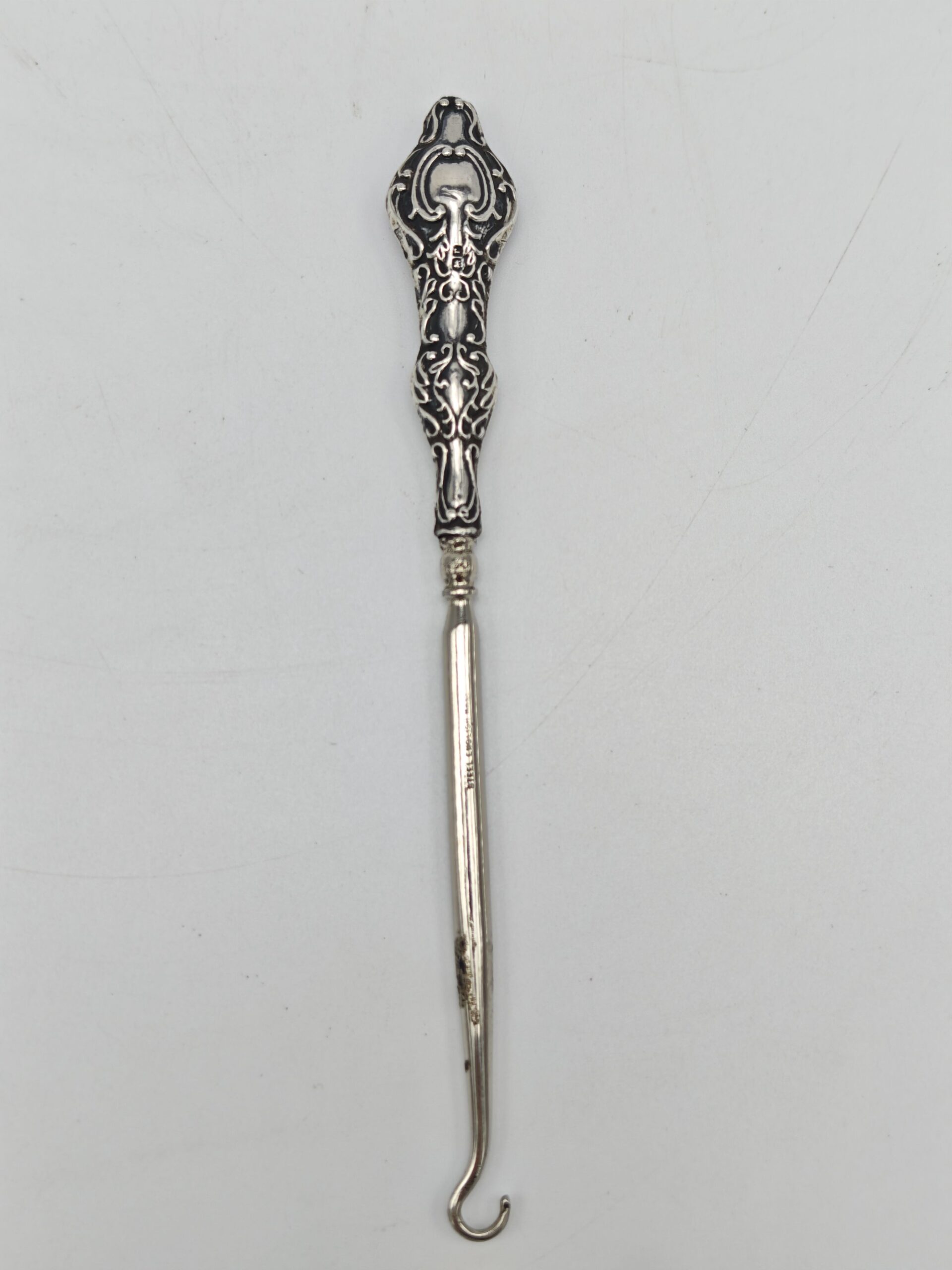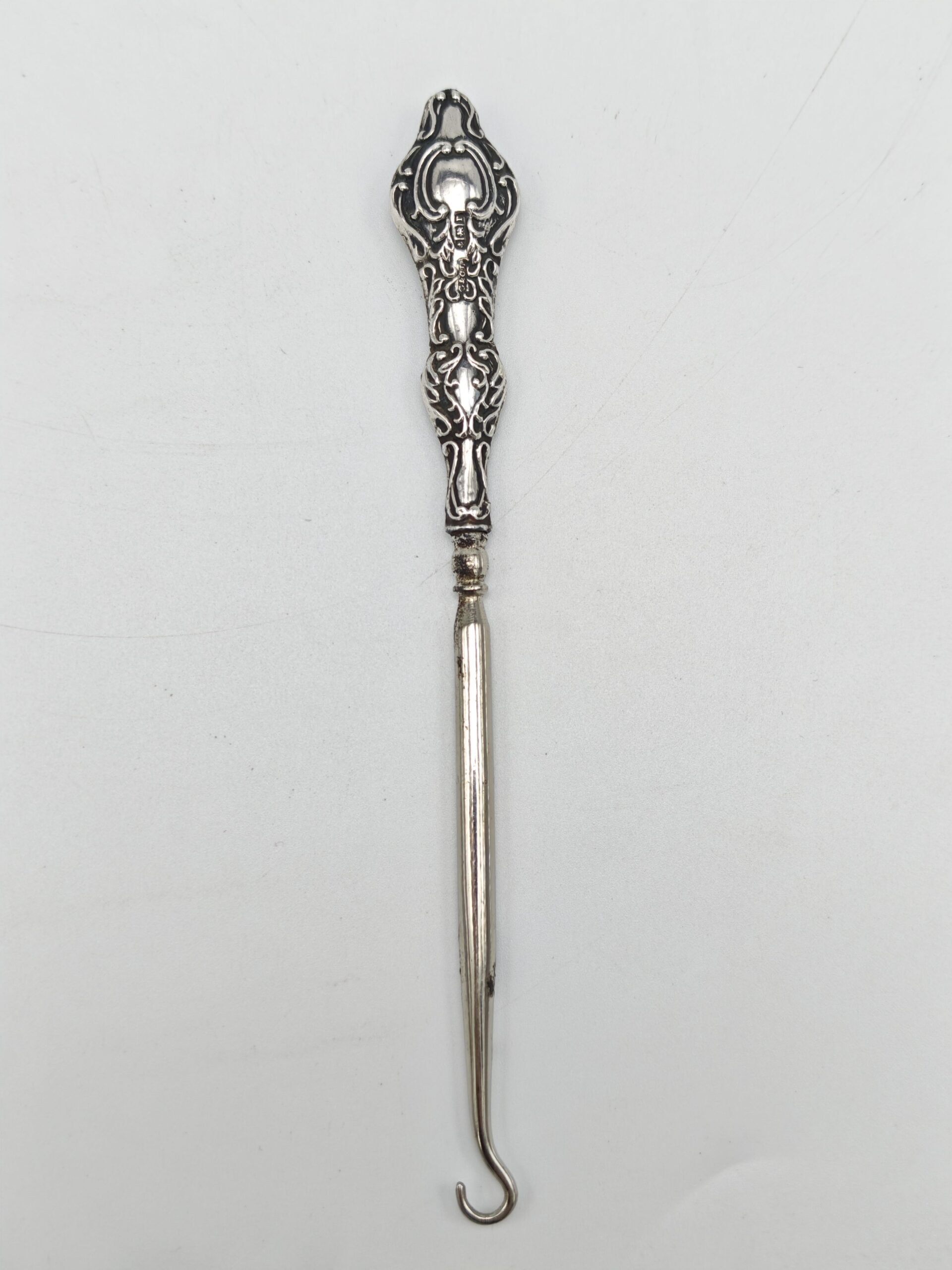 В конце XIX начале XX века такие крючки были частью гардеробного набора. Изначально он предназначался для расшнуровки обуви, в дальнейшем- для перчаток, корсета. С помощью крючков дамы застегивали пуговицы, а мужчины мундиры.