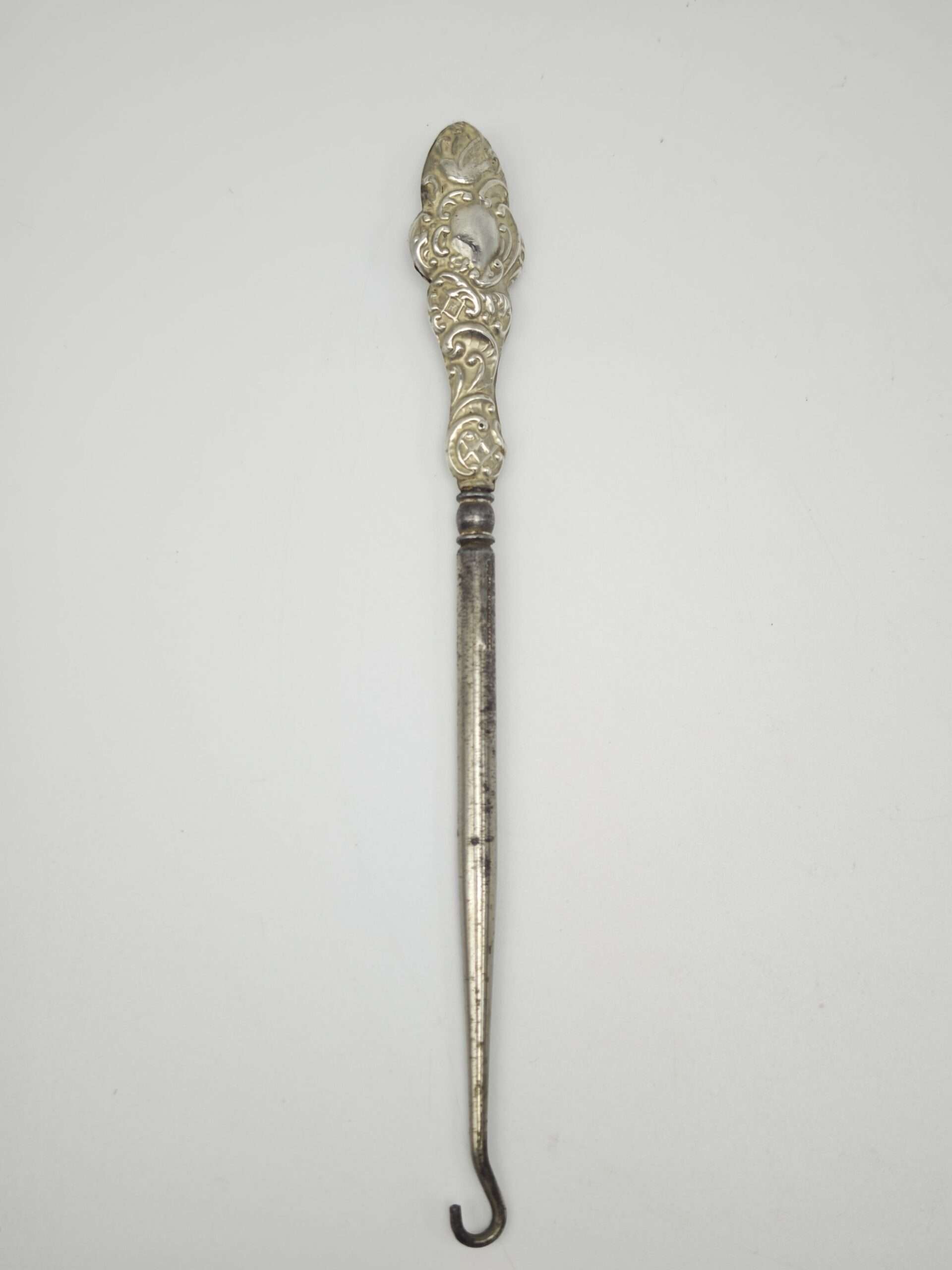 В конце XIX начале XX века такие крючки были частью гардеробного набора. Изначально он предназначался для расшнуровки обуви, в дальнейшем- для перчаток, корсета. С помощью крючков дамы застегивали пуговицы, а мужчины мундиры.