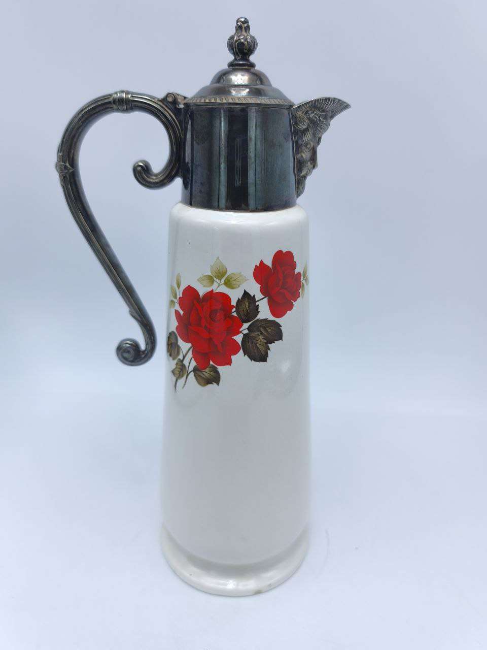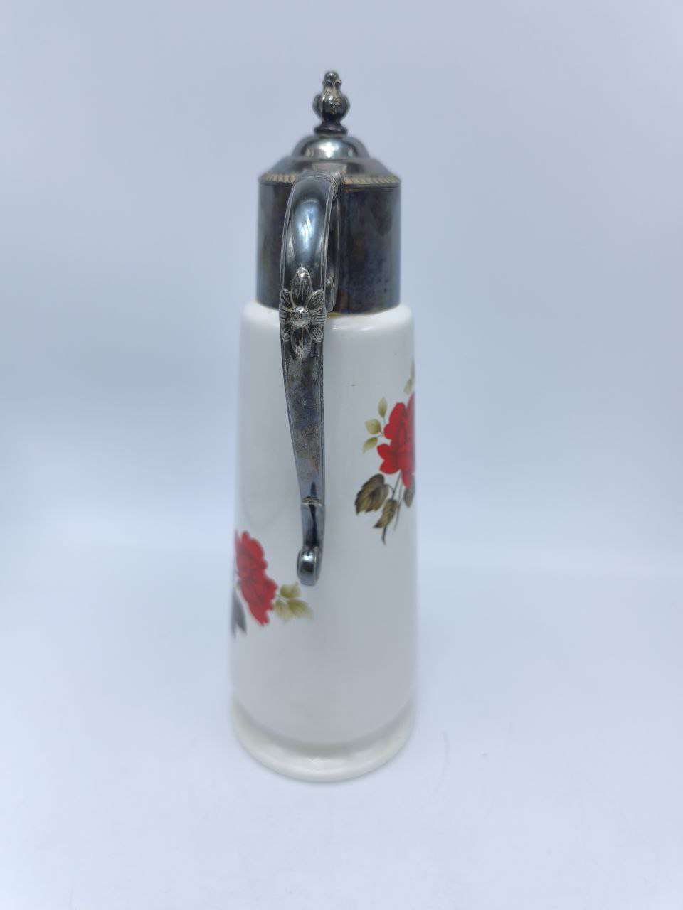 Материалы и отделка:Основной материал: высококачественный фарфорПокрытие: декоративное серебрениеОтделка: ручная работаТехнические характеристики:Высота: 29 смДиаметр основания: 10 смОбъем: 1 литрВес: 840 гОсобенности конструкции:Форма: классическая графиноваяДекор: декоративные элементы с серебрениемФункциональность: удобная конструкция для сервировкиДизайн и декор:Стиль: традиционный английскийЭстетика: благородные линииДетали: тщательная проработка элементовУкрашения: декоративные элементы с серебрениемНазначение и применение:Основное использование: сервировка напитковДополнительные варианты:Элемент декораКоллекционный предмет