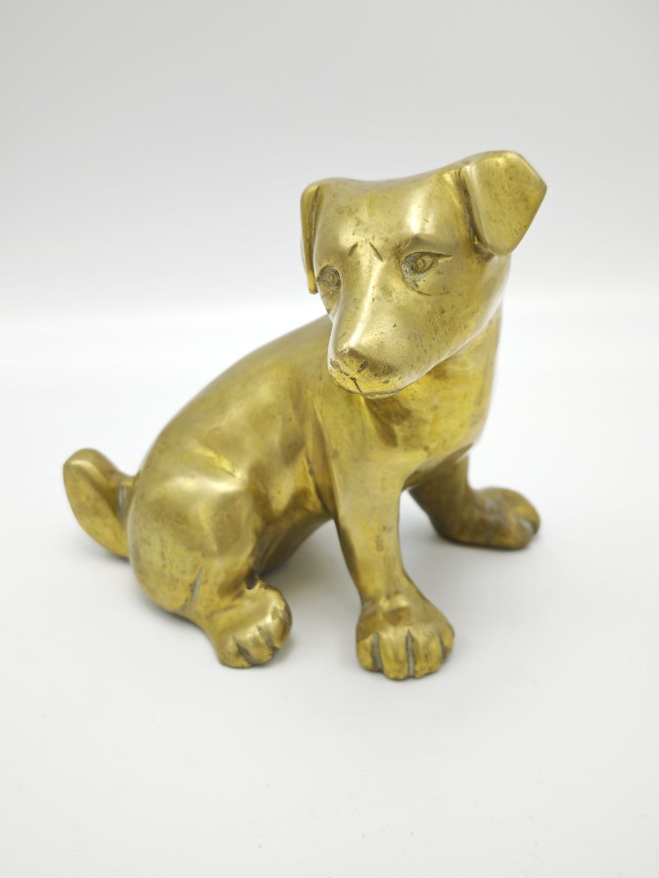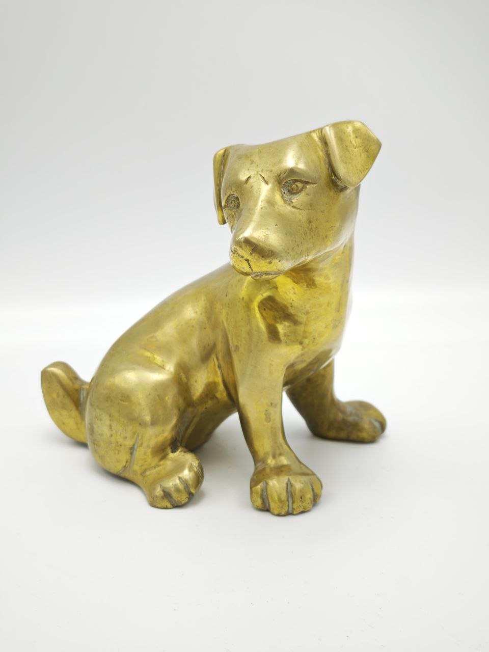 Латунная статуэтка “Собака” Англия, XX век, Массивная литьё, патина времени, Размер 16 15 см, Коллекционный экземпляр для ценителей винтажа