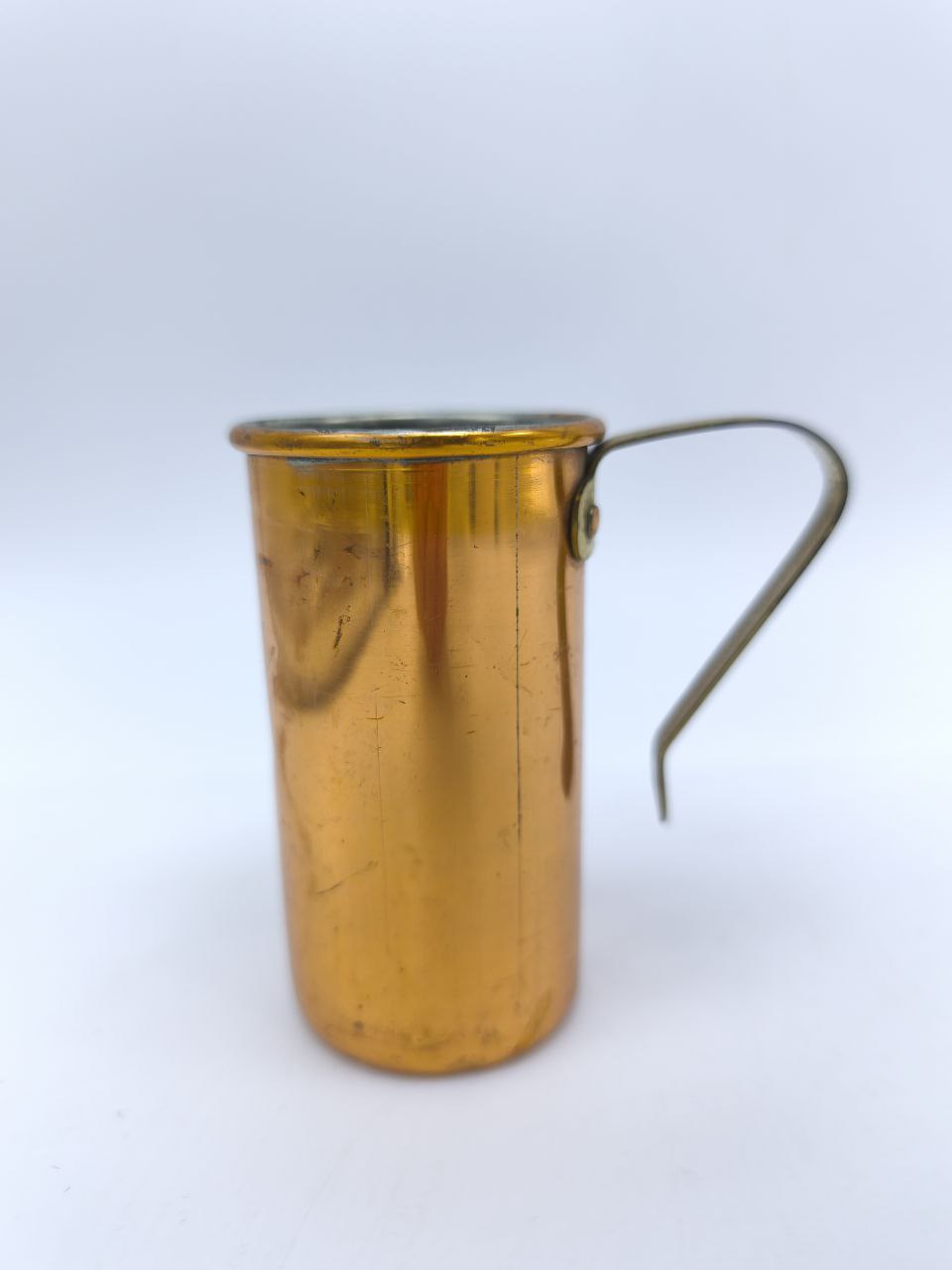 Редкий мерный стакан, изготовленный в США в 1950-е годы. Теплый блеск меди и изящная латунная ручка делают его не только практичным предметом утвари, но и выразительным артефактом американского винтажа. Такой экземпляр станет достойным украшением коллекции антиквариата и добавит интерьеру характер и атмосферу ушедшей эпохи.