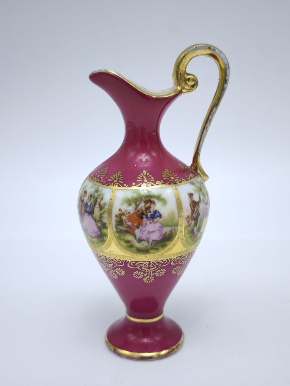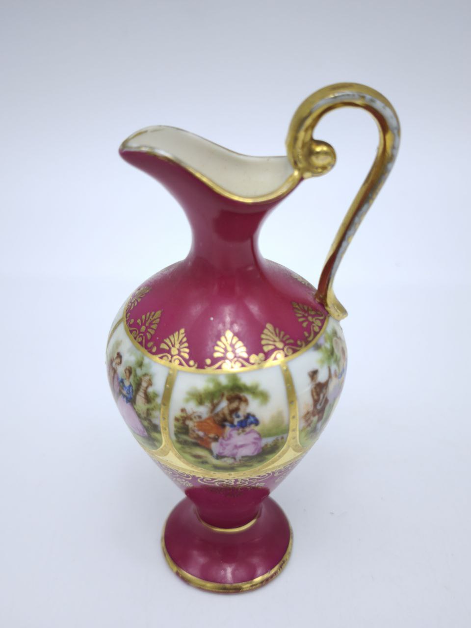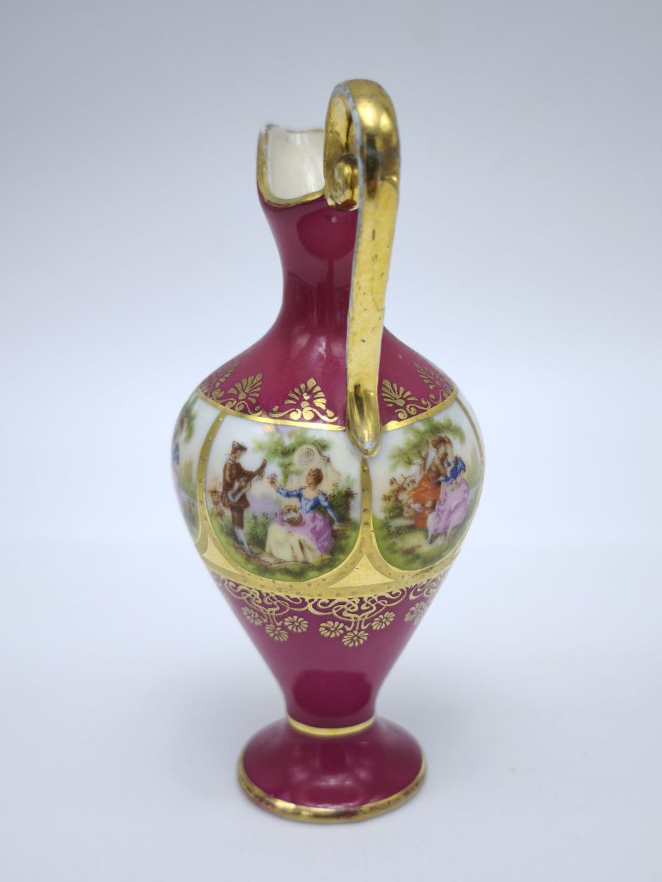Погрузитесь в атмосферу изящества и утонченности с нашим миниатюрным фарфоровым кувшином, который украсит ваш интерьер своим великолепием. Это изделие, выполненное с невероятной точностью и заботой о деталях, является настоящим произведением искусства в духе винтажных традиций. Фарфор, из которого изготовлен кувшин, обладает исключительной тонкостью, что придаёт ему элегантный шарм, а изысканная позолота подчеркивает его роскошный дизайн.Одна из главных особенностей этого кувшина — его художественная роспись, выполненная вручную. Каждая деталь рисунка, от тончайших линий до насыщенных цветовых пятен, создаёт захватывающую картину, которая пробуждает воображение и наполняет дом уникальной атмосферой. Такой кувшин — это не просто предмет интерьера, а дань уважения ушедшей эпохе, когда качество и внимание к деталям ставились во главу угла.Миниатюрные размеры кувшина делают его универсальным элементом декора. Он гармонично впишется как в классический, так и в современный интерьер, станет ярким акцентом рабочего кабинета, домашней библиотеки или изысканной гостиной. Его изысканный вид и безупречное исполнение не оставят равнодушными ваших гостей, вызывая восхищение и желание узнать больше о его истории.Этот фарфоровый кувшин также станет превосходным подарком для почитателей классического уюта и антикварного великолепия. Его уникальный стиль и элегантность сделают его незаменимым в коллекции изысканных предметов искусства.Воплощение истории и утонченности в вашем доме — это возможно с нашим миниатюрным фарфоровым кувшином с позолотой и художественной росписью. Добавьте нотку изысканности и винтажного лоска в ваш интерьер!