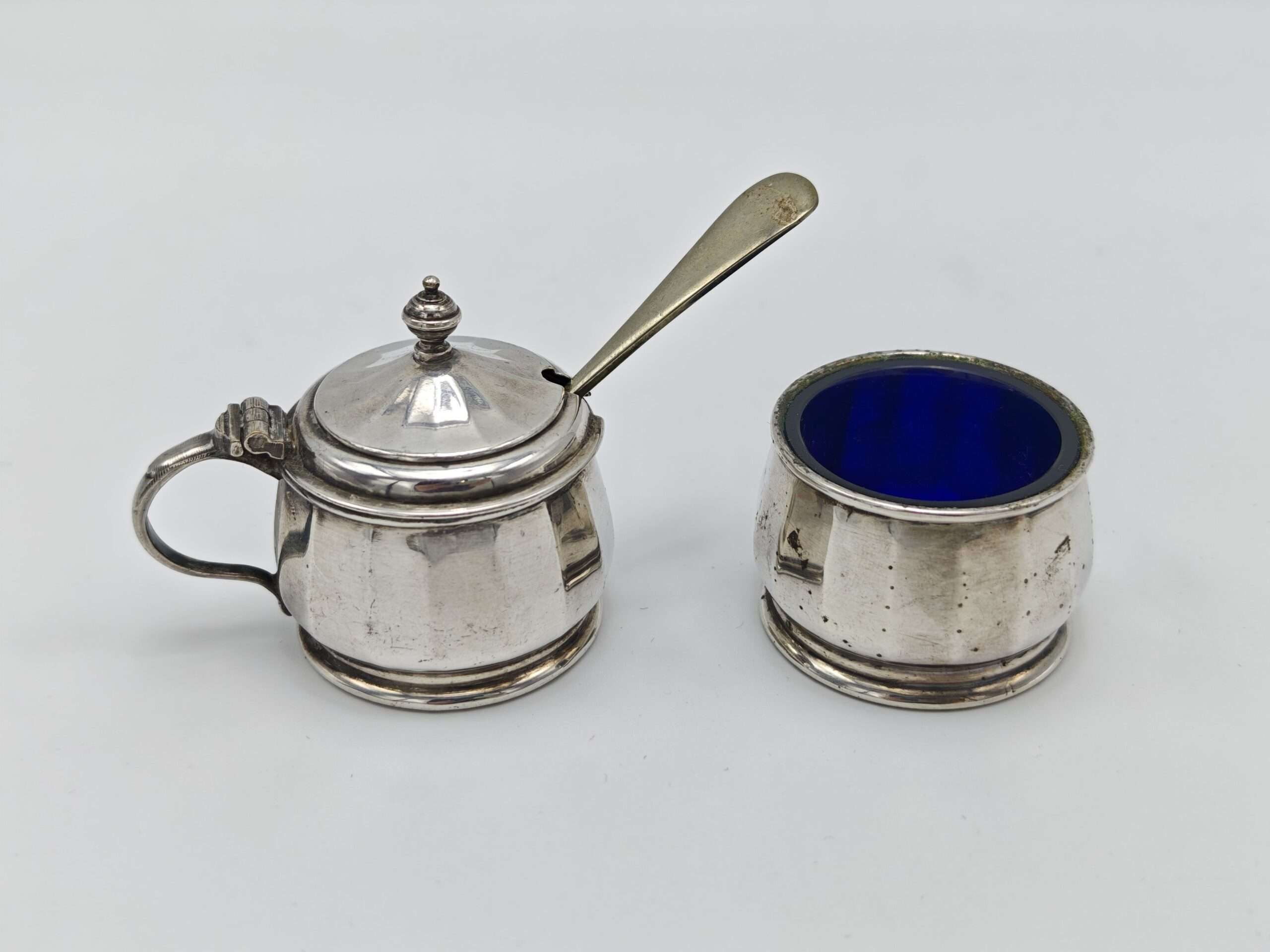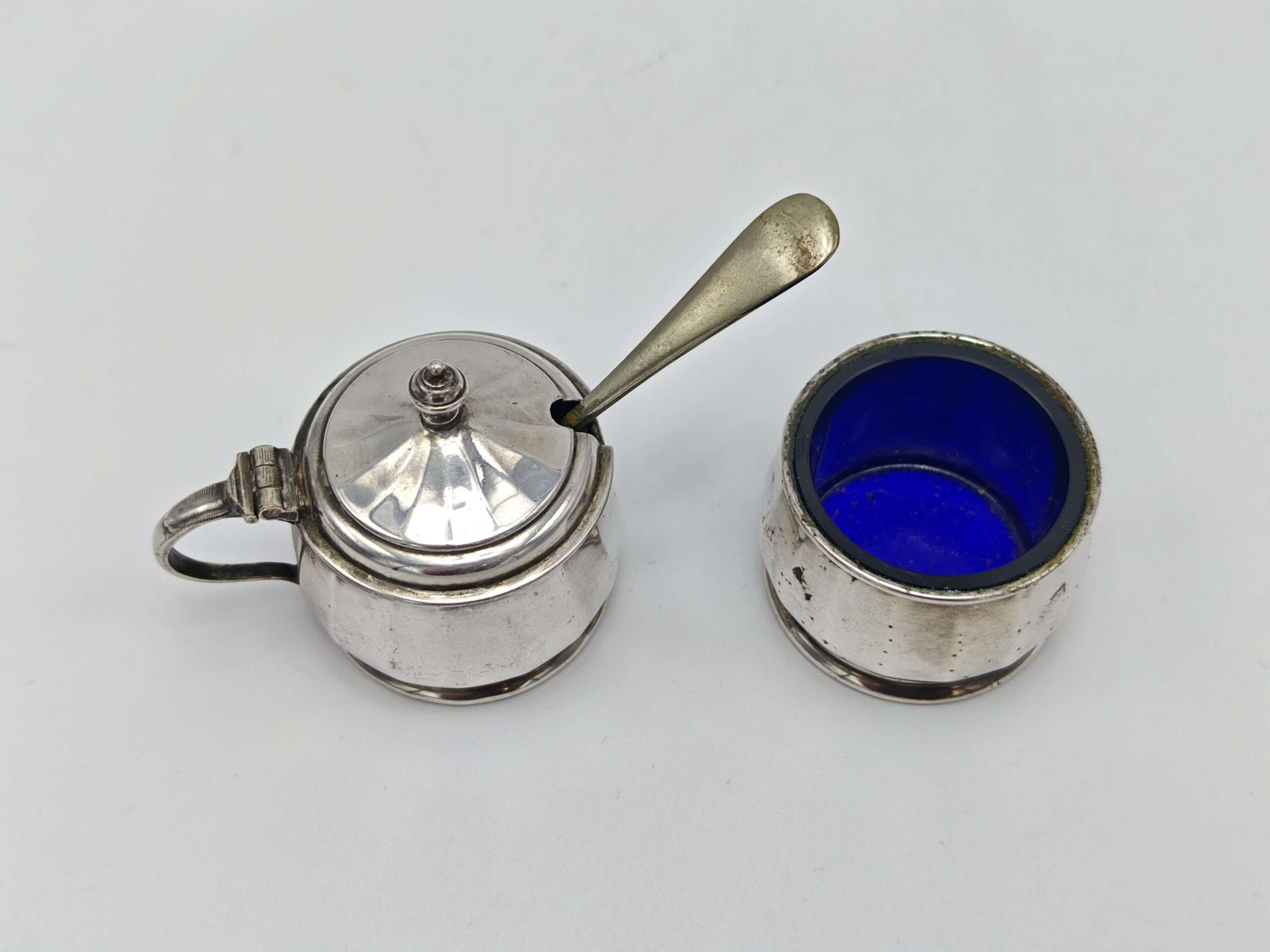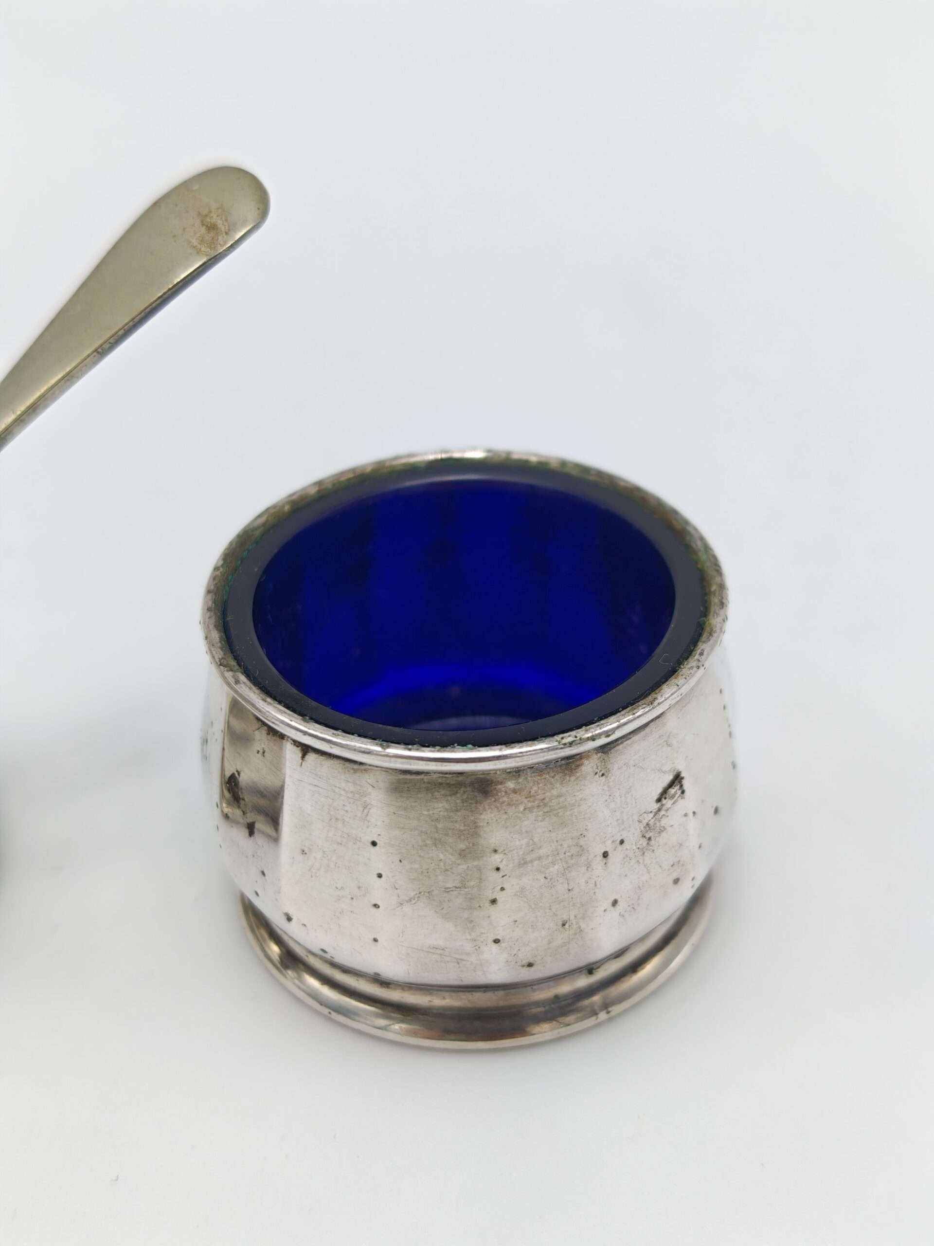 Набор для специй: солонка и горчичница, ложечка, серебрение, стекло кобальт.
