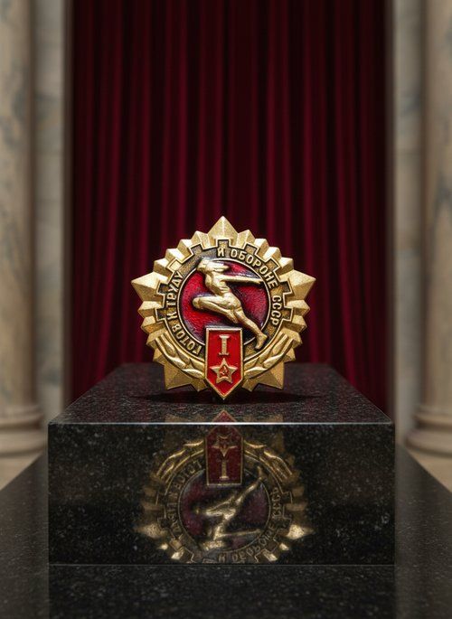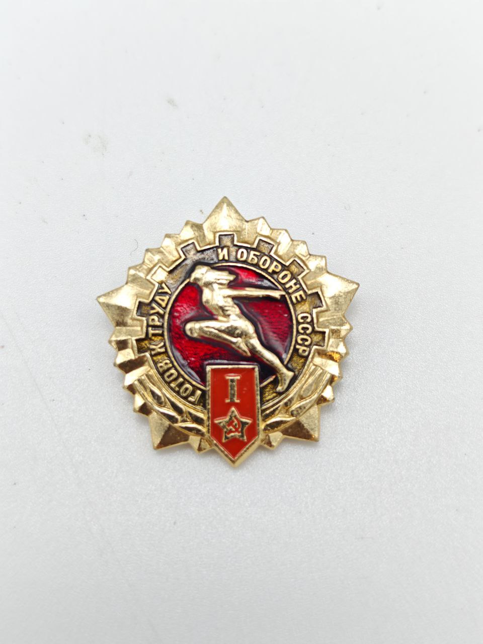 Нагрудный знак «Готов к труду и обороне СССР» I степени изготовлен в 1985 году в СССР. Выполнен из металла с красной эмалью, центральная композиция с бегущей фигурой и шестерёнчатым обрамлением подчёркивает спортивную символику эпохи. Чёткий рельеф и контраст красного и металлического оттенка делают знак выразительным элементом коллекции. Компактный формат удобен для хранения, демонстрации и тематических собраний.
