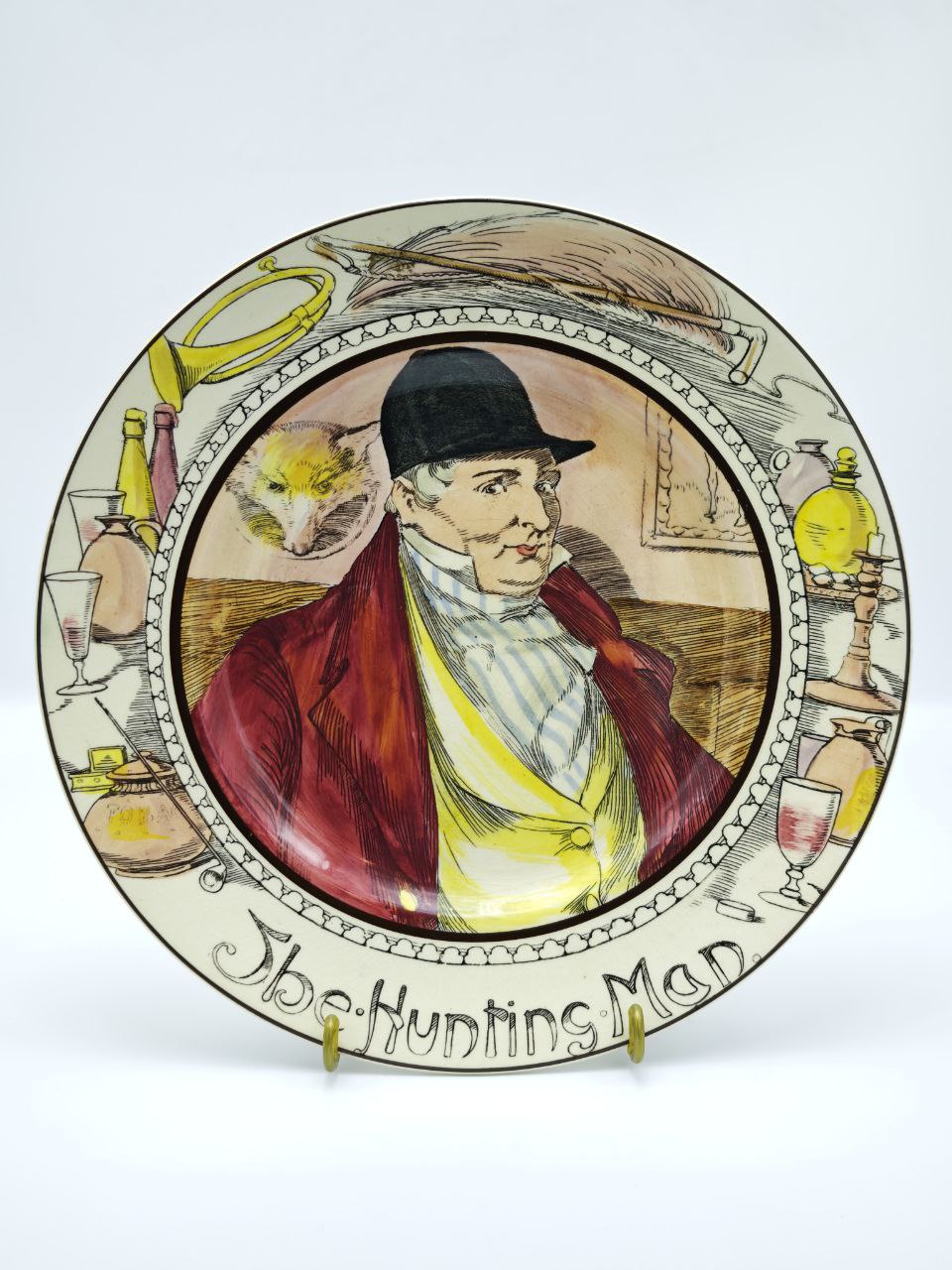 Редкая декоративная тарелка Royal Doulton с охотничьим сюжетом — настоящее воплощение английской традиции ручной росписи. Сценка «The Hunting Man» выполнена в фирменной манере мануфактуры: глубокие цвета, выразительные персонажи и характерная стилистика середины XX века. Такая тарелка создаёт атмосферу старинного английского дома и станет эффектным акцентом на стене или в коллекционном шкафу. Сохранилась превосходно, что делает её ценным предметом для коллекционеров и ценителей аутентичного фарфора.