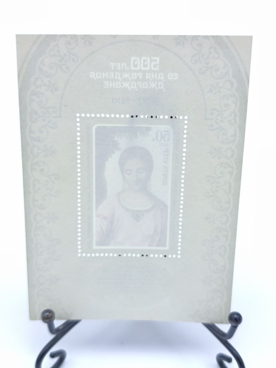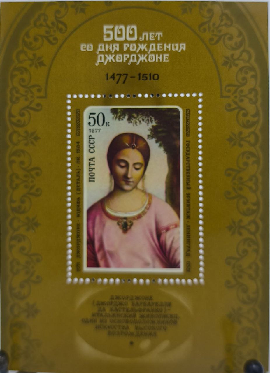 Редкий памятный почтовый блок СССР, выпущенный в 1977 году к 500-летию со дня рождения великого итальянского живописца Джорджоне (1477–1510). На марке изображён фрагмент картины мастера эпохи Высокого Возрождения. Коллекционная ценность и историческая значимость делают этот экземпляр достойным украшением любой филателистической коллекции. Отличный подарок ценителям искусства и истории.