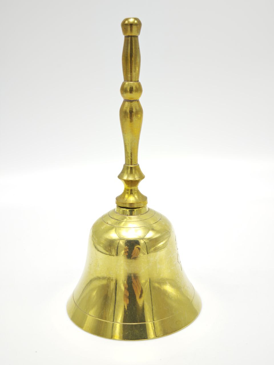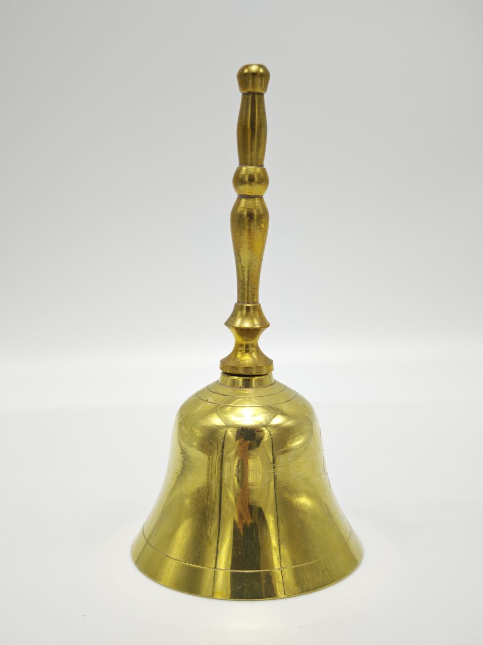 Англия, 1980 год. Латунный колокольчик с гравировкой «Happy Anniversary» выполнен в классической форме с вытянутой фигурной ручкой и гладким зеркальным куполом. Размер 12,5×6 см делает его выразительным, но удобным для повседневного использования. Вес 95 г создаёт лёгкое, сбалансированное ощущение в руке. Чистый звон и праздничная надпись превращают его в символический аксессуар для торжественных дат, камерных ужинов и особых событий.