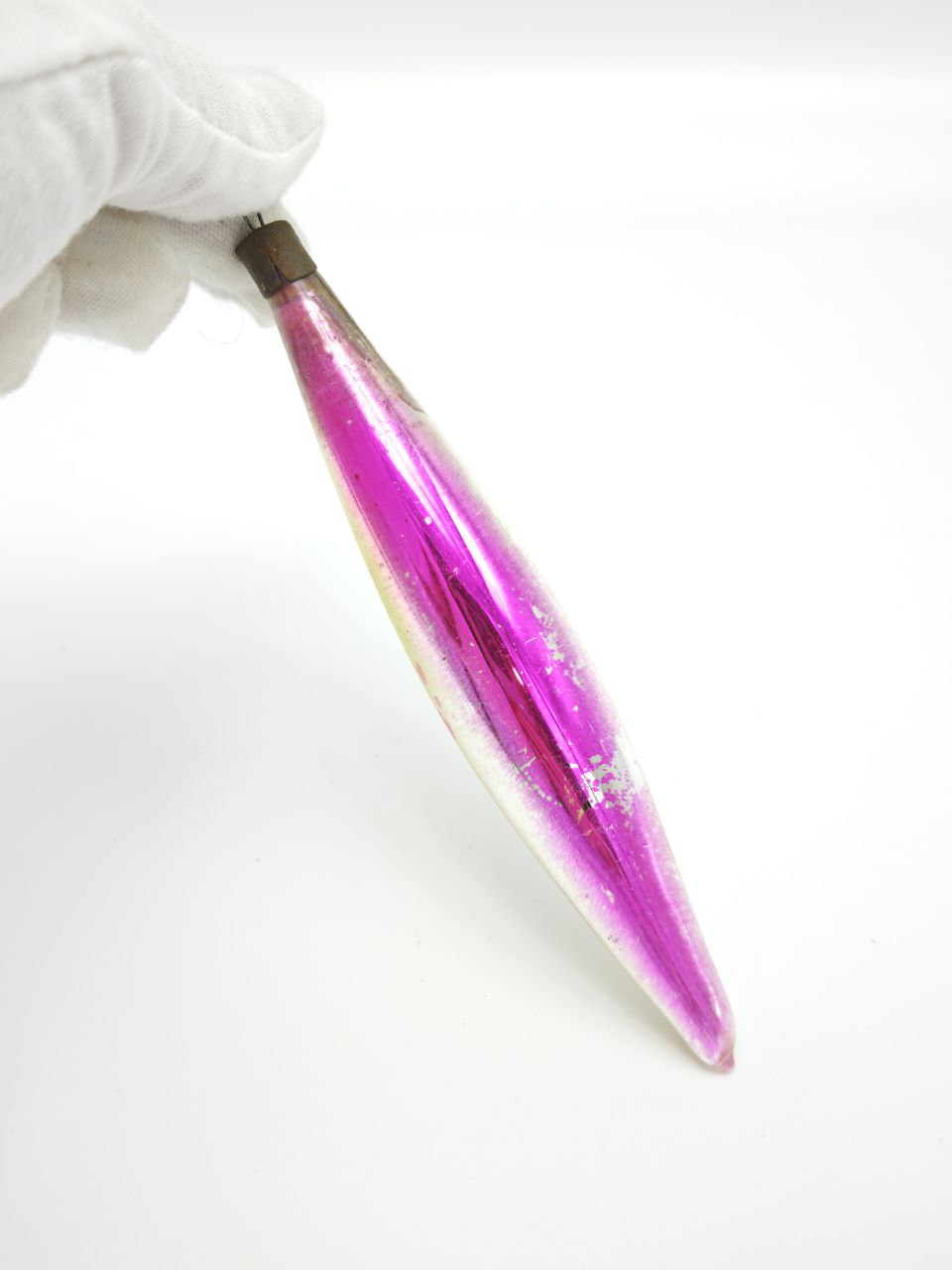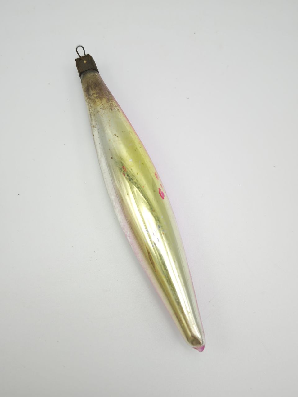 Эта стеклянная игрушка-капля, словно застывшая в полёте, переносит вас в эпоху, когда рождественские ёлки украшали не шаблонными наборами, а уникальными сокровищами, созданными вручную. Её изящная форма, напоминающая каплю росы, вытянутая и гладкая, будто выдутая дыханием мастера, играет с светом так, что каждый поворот раскрывает новые грани: розовый оттенок, словно закат над снежным полем, плавно переходит в золотистый блеск, напоминая о сиянии старинных монет. На поверхности — едва уловимые следы времени: тонкие трещинки, пятна патины, которые не портят, а подчеркивают её возраст, превращая в живой артефакт прошлого. Металлический колпачок у основания, покрытый темнотой лет, с тонкой петлёй для подвешивания, хранит в себе тишину старых мастерских, где каждая деталь создавалась с заботой. В руках она кажется хрупкой, но в ней ощущается вес истории: неровности стекла, игра иризирующего покрытия, которое при свете вспыхивает как живой огонь. Это не просто украшение — это обещание, что в каждом доме, где она повесится, зазвучат голоса прошлых рождеств: смех детей, шелест подарочных бумаг, тихие молитвы под мерцание гирлянд. Повесьте её на ёлку, и она станет не просто элементом декора, а хранителем тайны, напоминая, что истинная красота рождается из времени, любви и тех маленьких деталей, которые делают праздник по-настоящему волшебным. Для тех, кто ищет не просто вещь, а историю, эта игрушка — ключ к миру, где каждая царапина — часть легенды, а каждый отблеск — отголосок счастливого воспоминания.