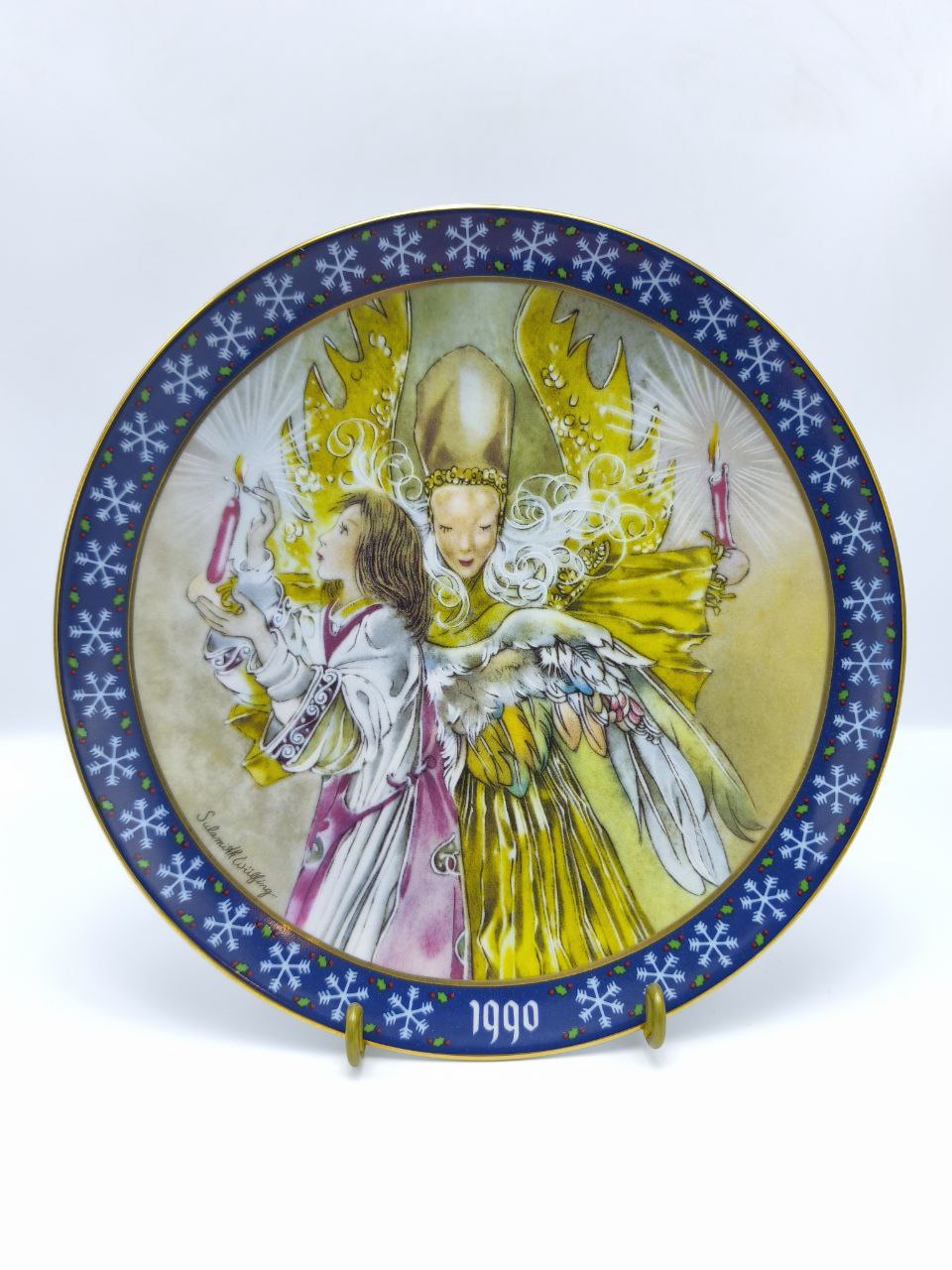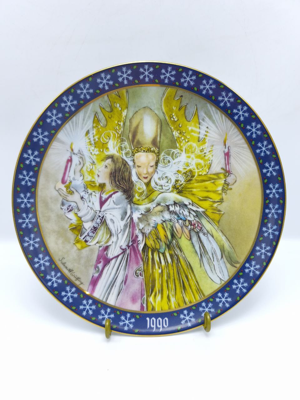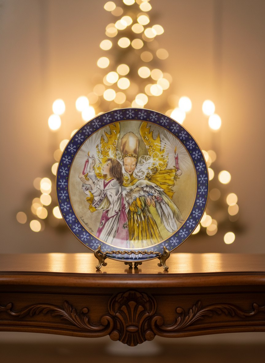 Рождественская коллекционная тарелка «Свет Святой Ночи» — шестая в знаменитой серии Sulamith Wülfing Christmas Series, выпущенной под маркой Königselt Bayern (Западная Германия, 1990 г.). Художница Суламит Вюльфинг передала волшебство Святой ночи через образ ангела, несущего свет и надежду.Изготовлена из тончайшего баварского фарфора, лимитированный выпуск завершён 31 декабря 1990 года.Яркое художественное оформление, насыщенные эмалевые краски и редкий тираж делают этот предмет жемчужиной любой коллекции рождественского декора.Идеальна в подарок ценителям искусства и праздничной атмосферы.