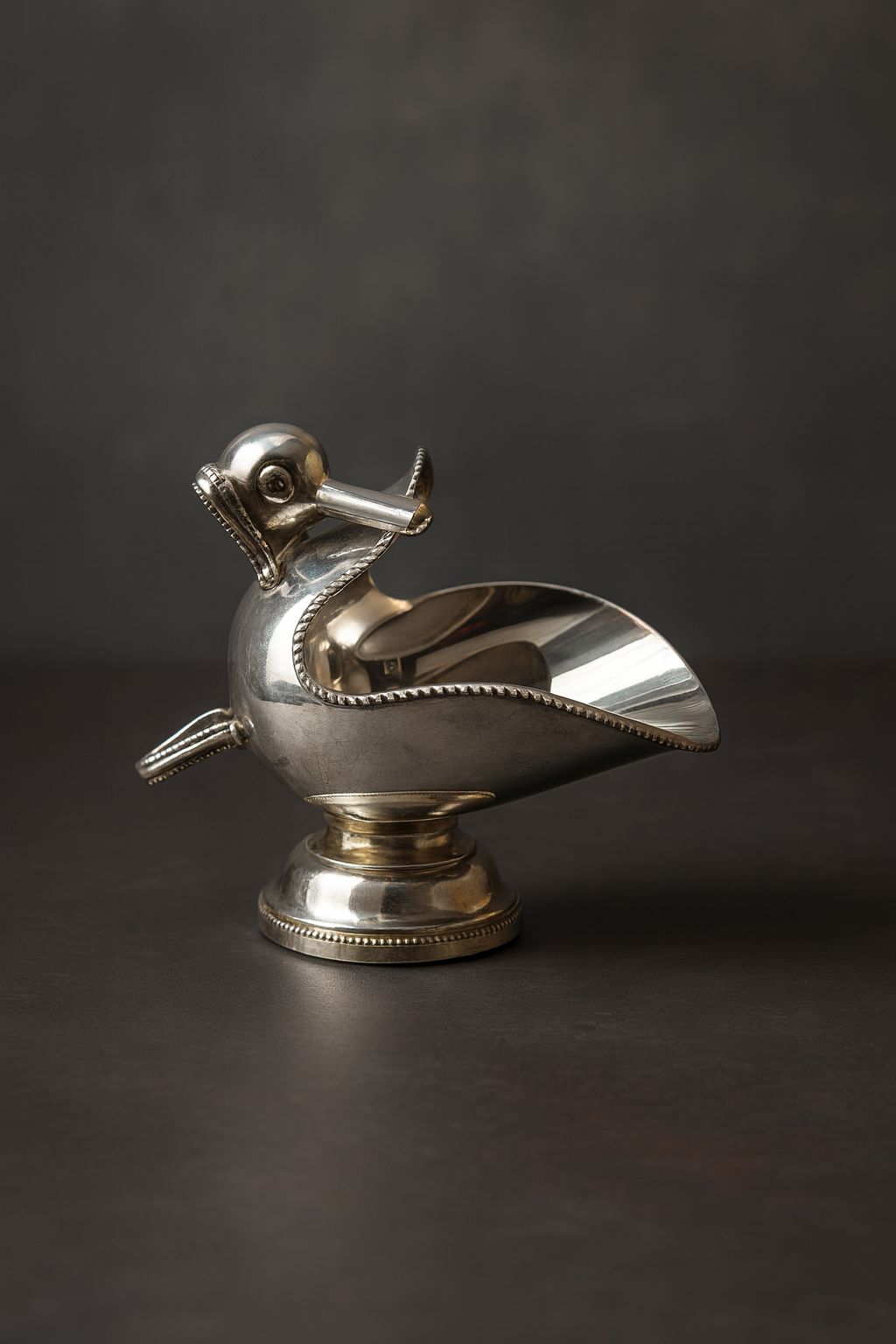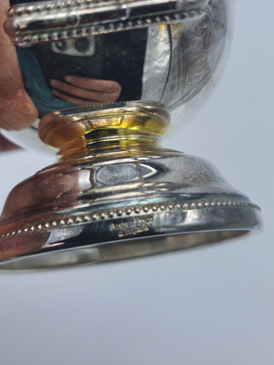 Коллекционная сахарница от Arthur Price of England — одного из самых известных английских производителей столового серебра XX века. Изделие покрыто серебрением, украшено классическим рельефным бордюром и выполнено в традиционном стиле середины прошлого века. Отлично сохранившийся предмет станет ценным элементом коллекции и украсит сервировку в винтажном английском духе.